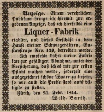 | Dateiinfo (Bild-Unterschrift und Info-Box, automatisch erstellt) | Zeitungsannonce von Wilhelm Barth, Februar 1844 Lizenz: NoC-NC 1.0 | ||