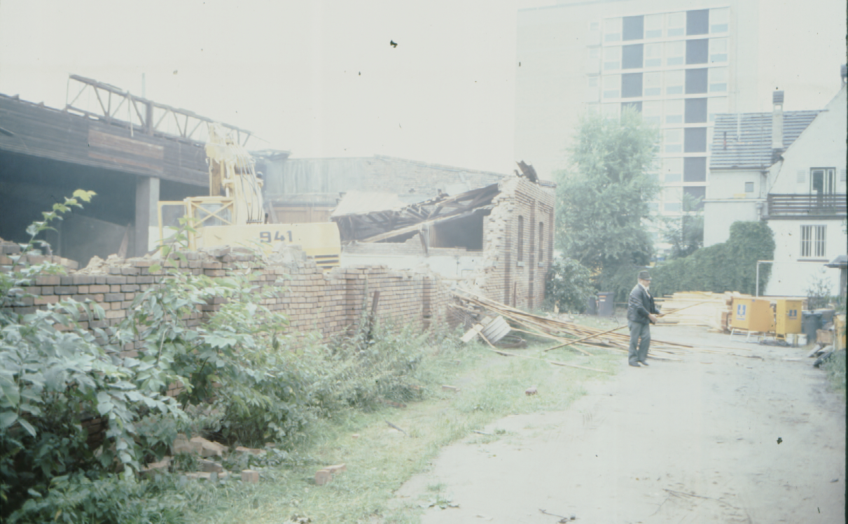 | Beschreibung | Baubeginn U-Bahn Fürth, Festakt an der Jakobinenstraße, 9. Juli 1979, Lagerhalle Kartoffel-Gegg (vorher Bergmann), Live-Abriss | ||