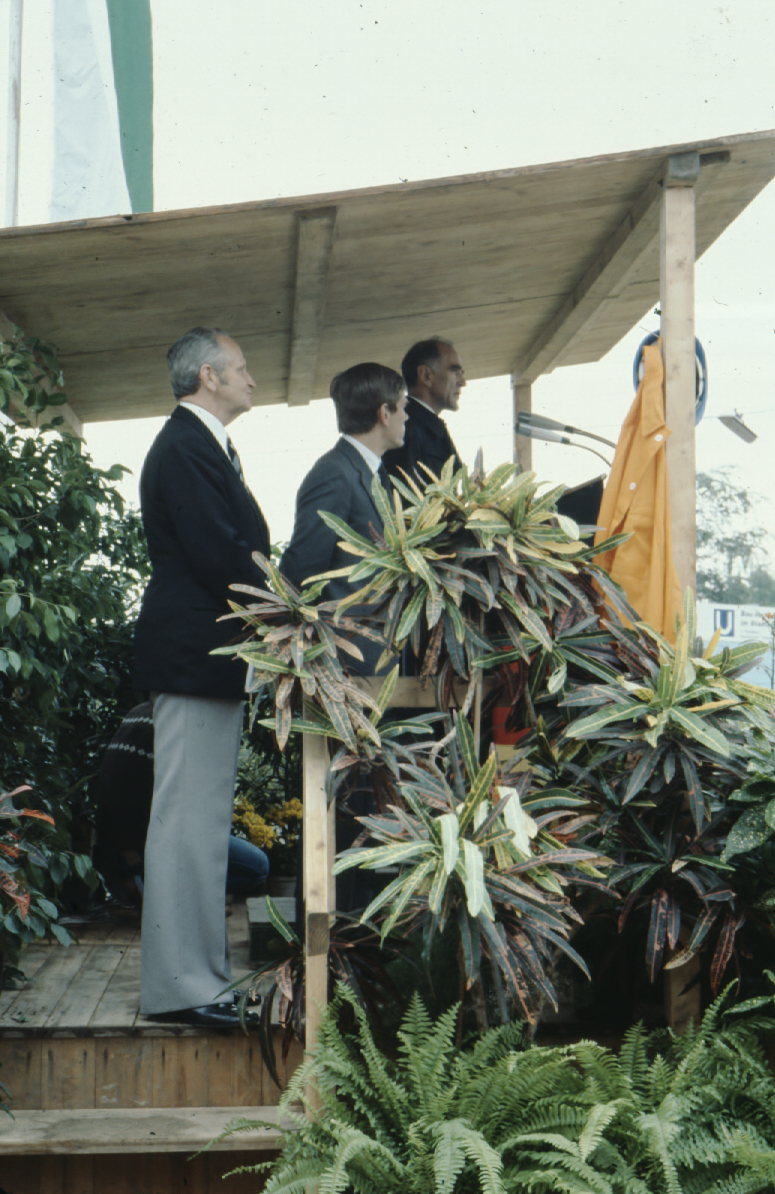 | Beschreibung | Baubeginn U-Bahn Fürth, Festakt an der Jakobinenstraße, 9. Juli 1979, im Bild Kurt Scherzer, am Rednerpult der Fürther Stadtbaurat Wolfgang Schneider | ||
