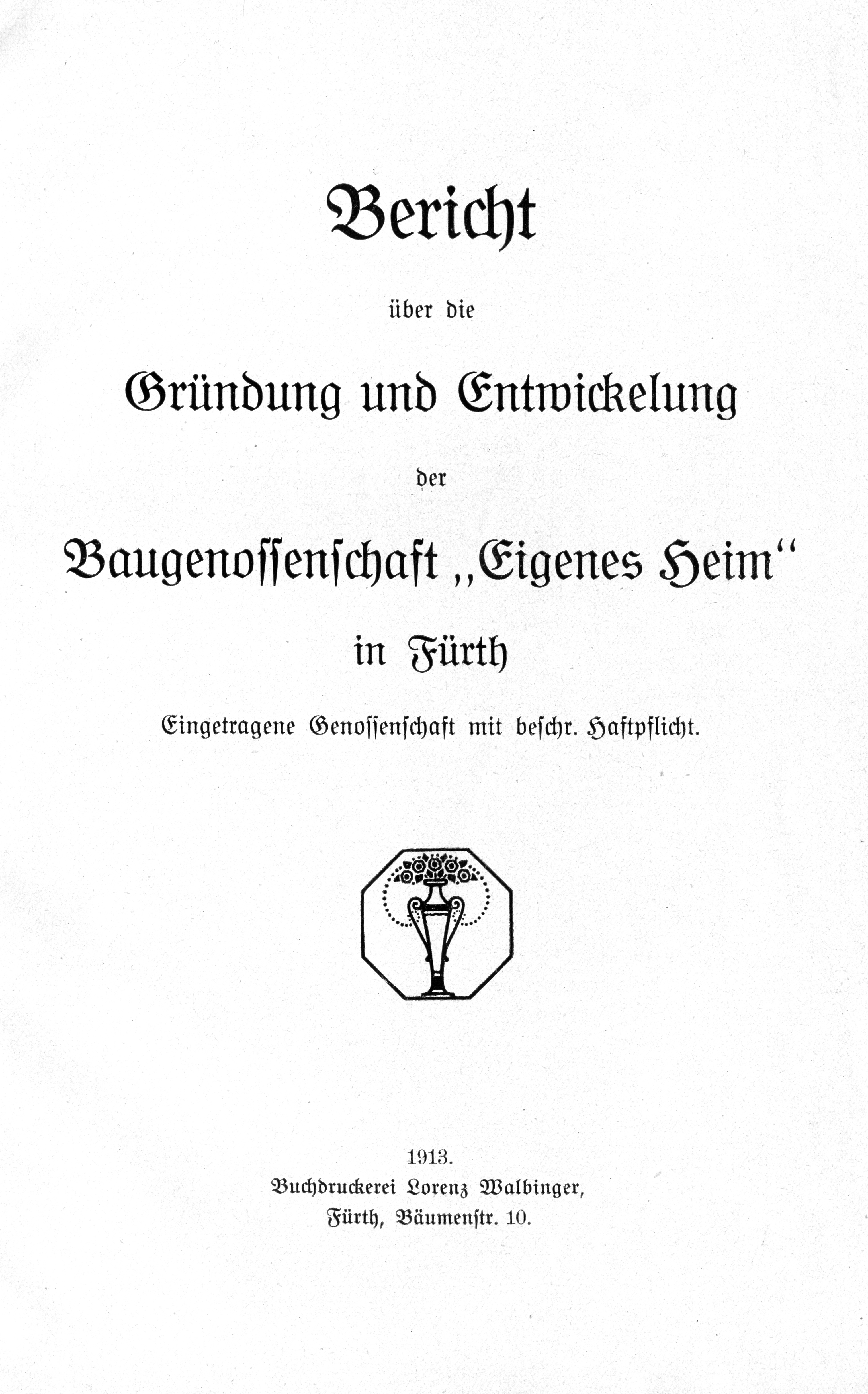 | Beschreibung | Innenseite, Bericht über Gründung und Entwicklung der Baugenossenschaft "Eigenes Heim", 1913 | ||