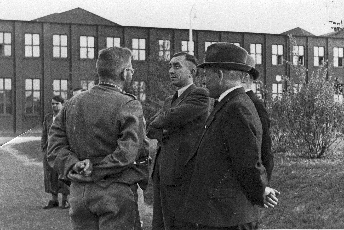 | Beschreibung | Direktor Masurat (Mitte) vor dem Gemeinschaftshaus an der Würzburger Straße. | ||