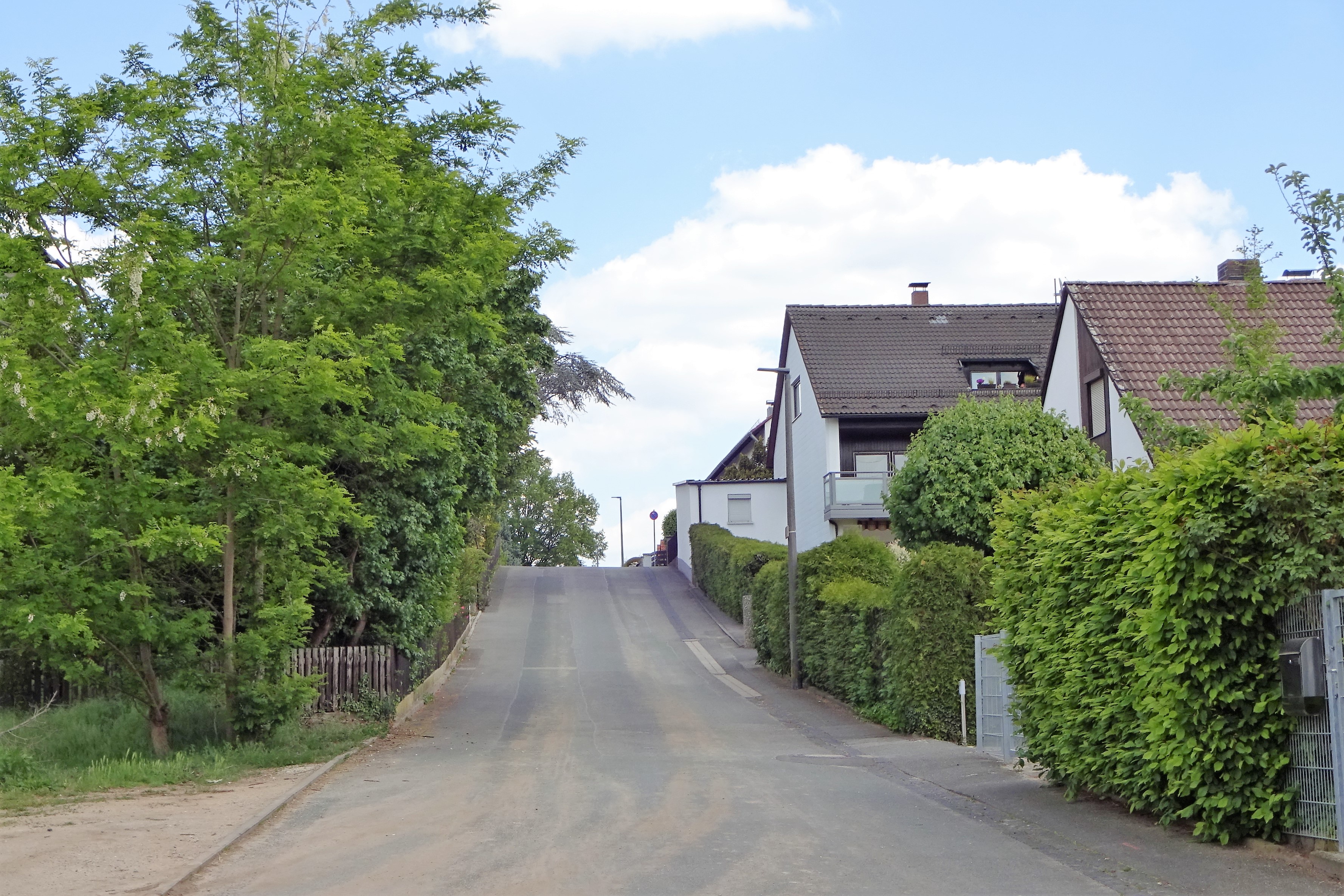 | Beschreibung | Blick in die untere Begonienstraße vom Regnitzweg aus Richtung Spitzwiesenstraße im Mai 2020 | ||