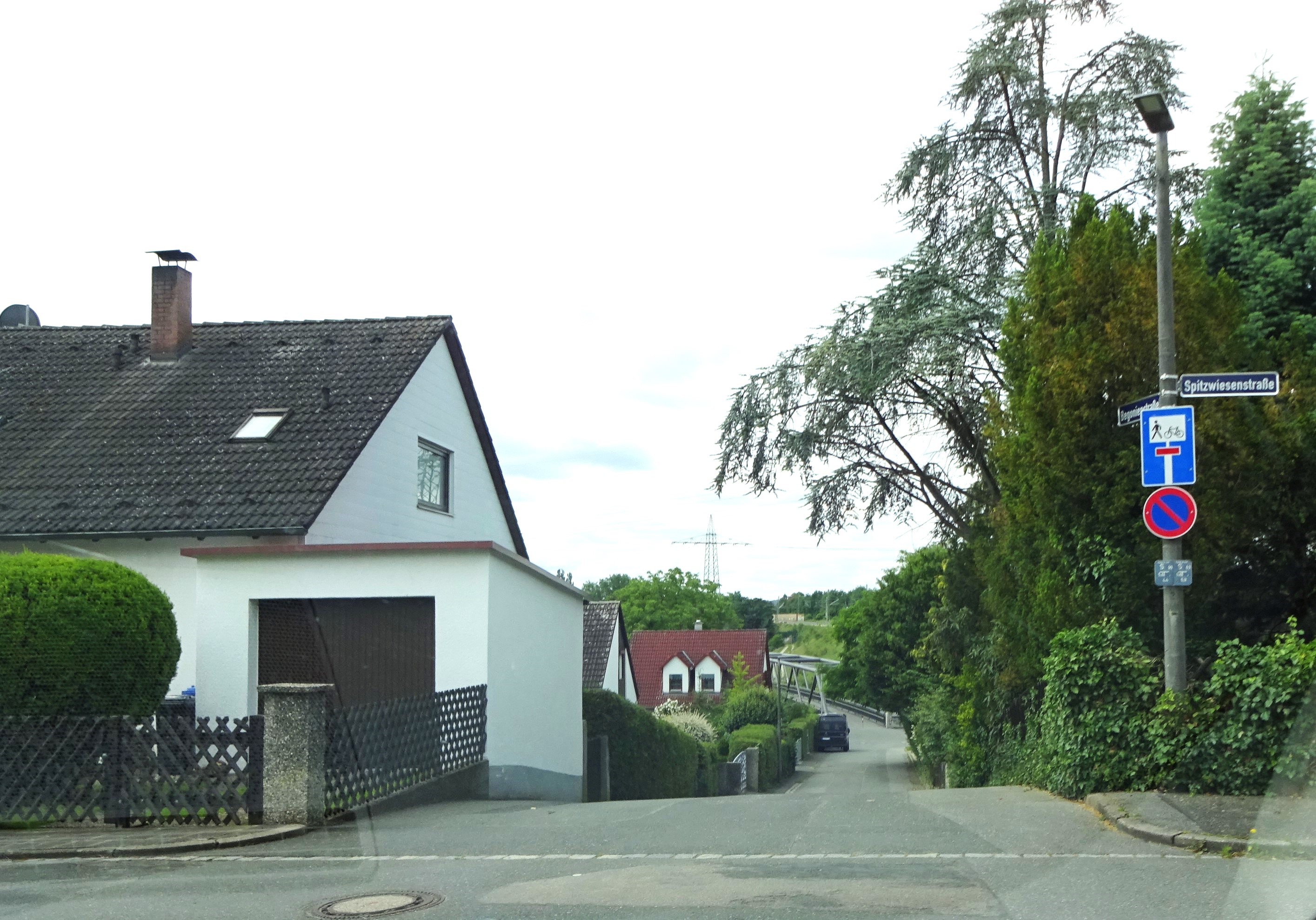| Beschreibung | Begonienstraße Kreuzung Spitzwiesenstraße, unten die Bremenstaller Brücke, 2025 | ||