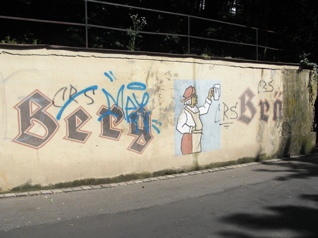 | Beschreibung | alte Berg-Bräu Werbemalerei, Fritz-Mailaender-Weg gegenüber der ehemaligen Gaststätte Wolfsschlucht | ||