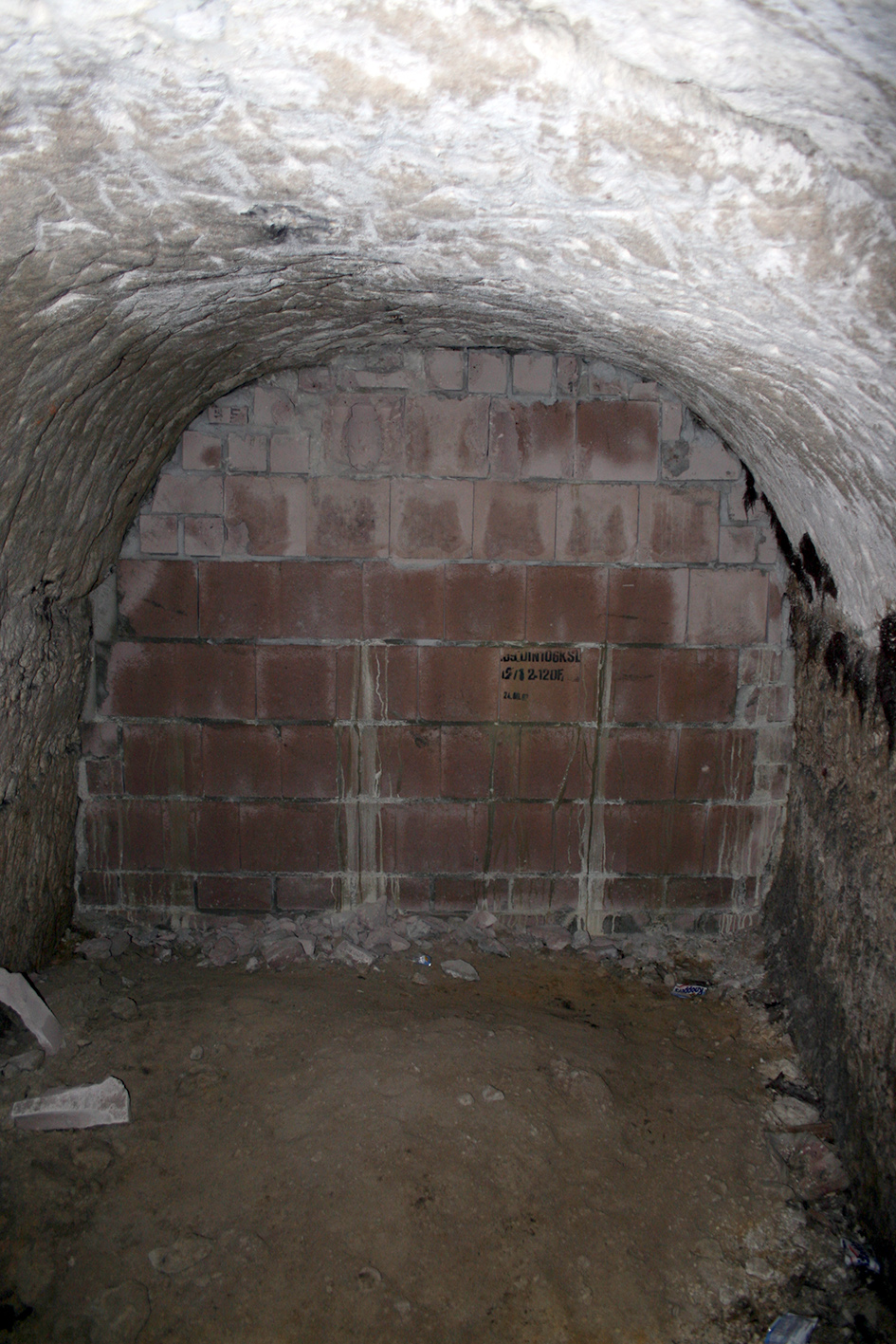 | Beschreibung | Gangsystem des ehem. Bergbräu-Kellers, hier mit Abmauerungsarbeiten zum Rest der ehem. Anlage, 2009. | ||