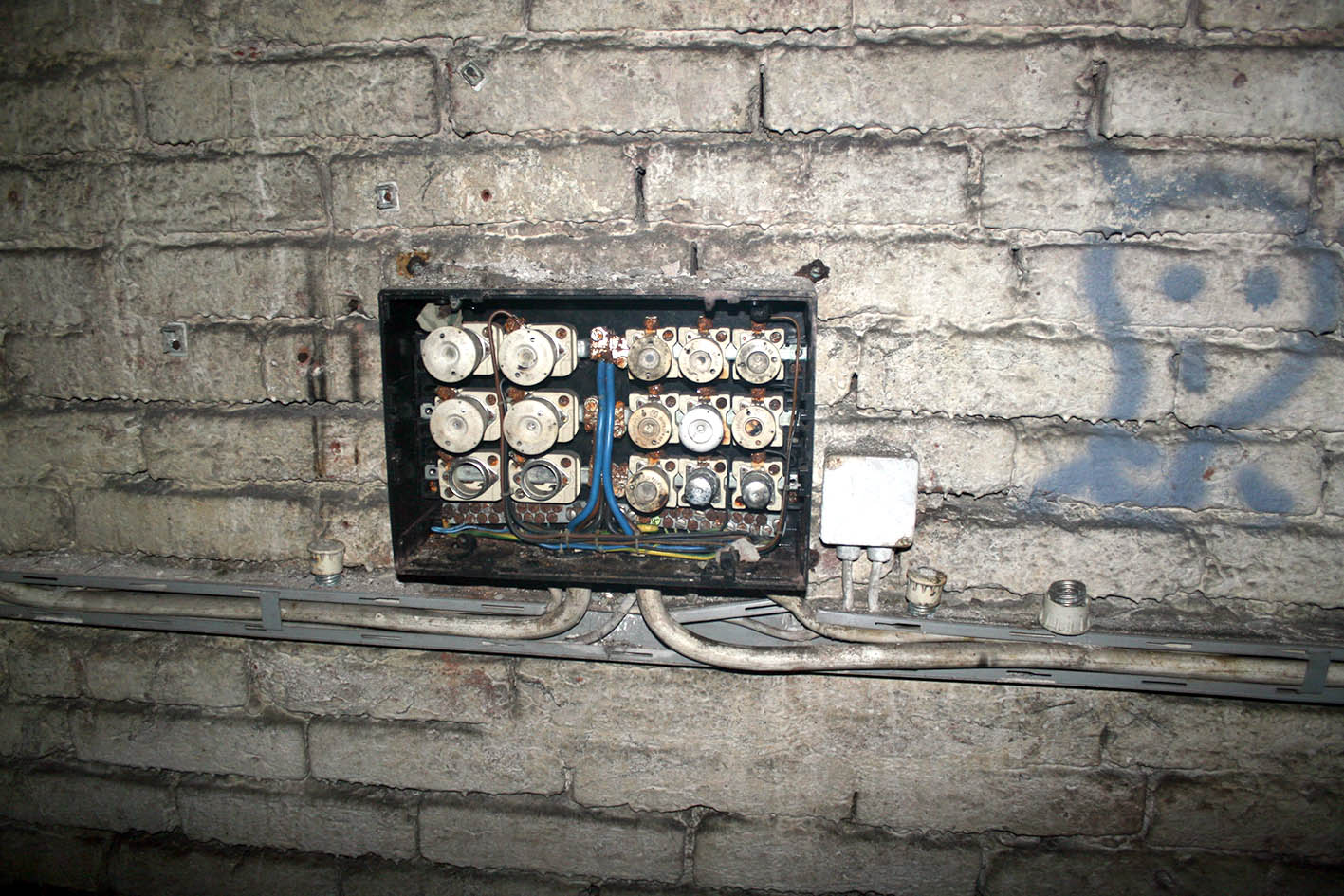 | Beschreibung | Stromverteiler im Gangsystem des ehem. Bergbräu-Kellers, 2009. | ||
