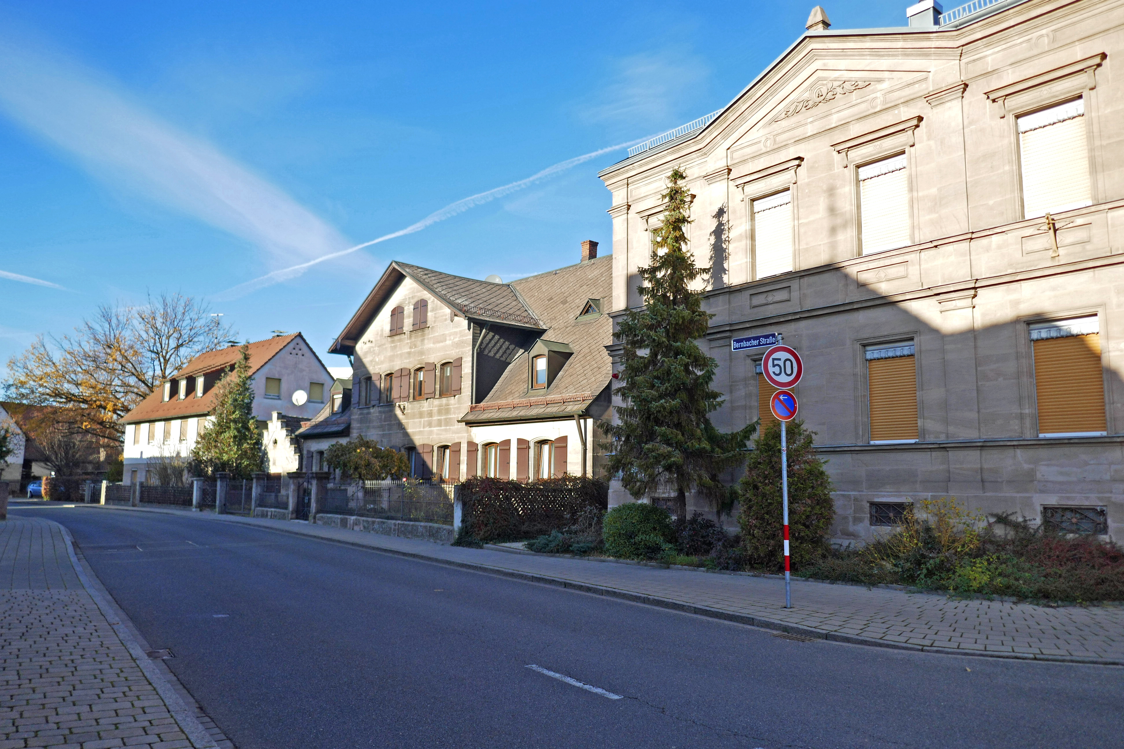 | Beschreibung | Blick vom Kapellenplatz auf die Bernbacher Straße 2 bis 10 in Burgfarrnbach, November 2020 | ||