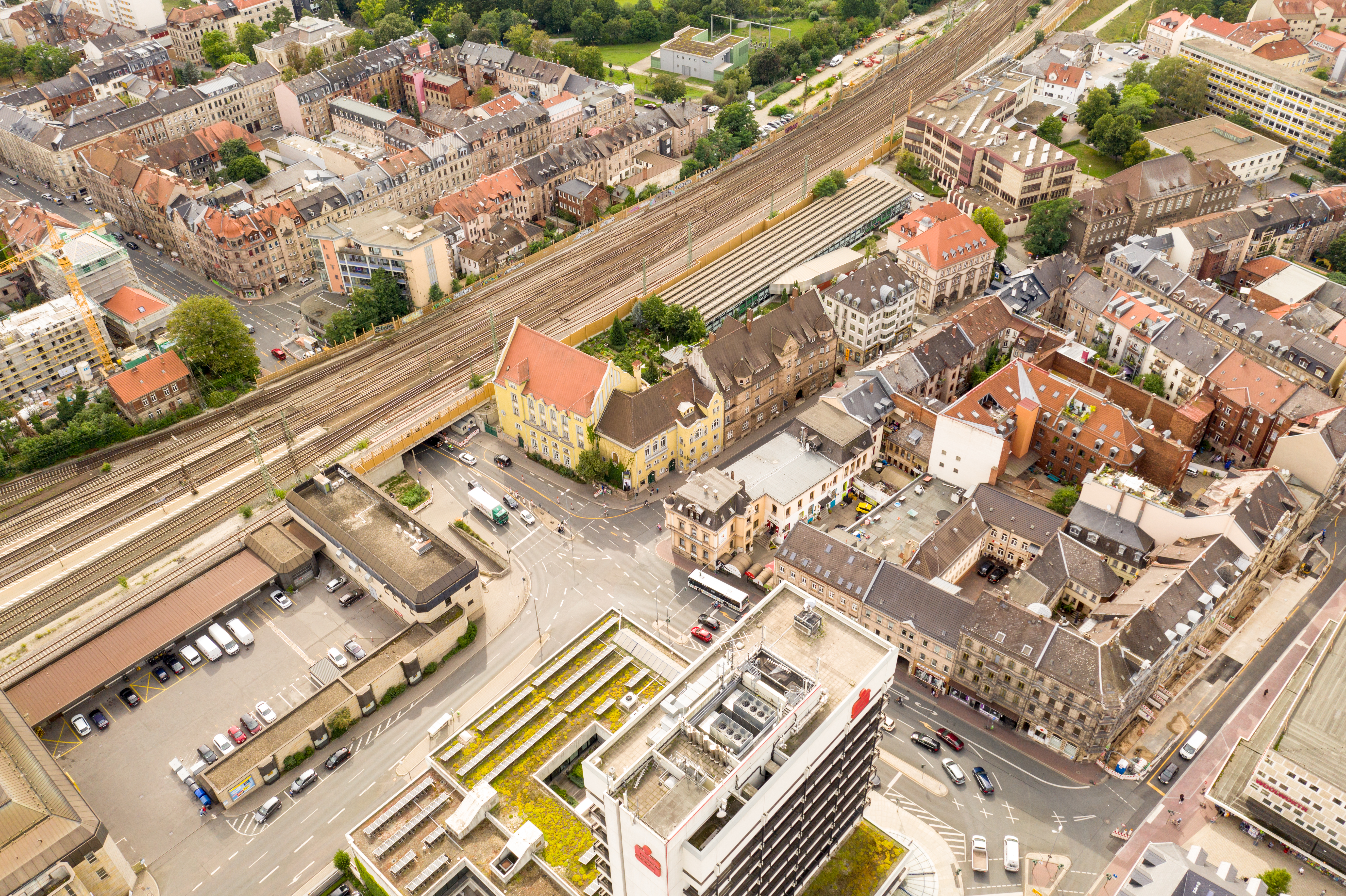 | Beschreibung | Blick über die Schwabacher Straße, Bildmitte das Berolzheimerianum, Aug. 2019 | ||