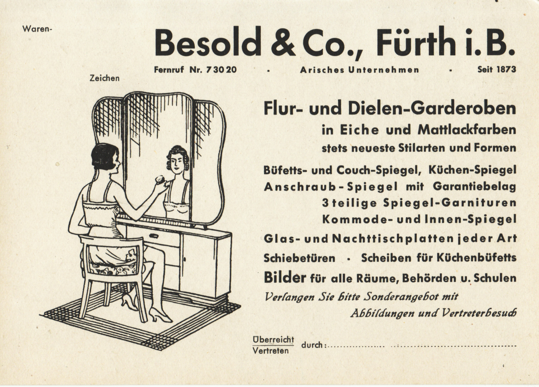 | Beschreibung | Werbekarte Fa. Besold | ||