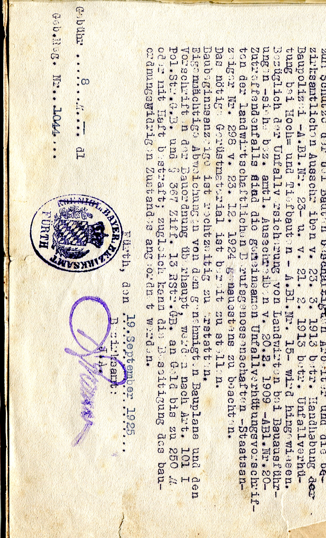 | Beschreibung | Amtliches Dokument (Ausschnitt) mit Dienstsiegel, "Königlich" und "Krone" wurden handschriftlich ausgestrichen, 1925 | ||