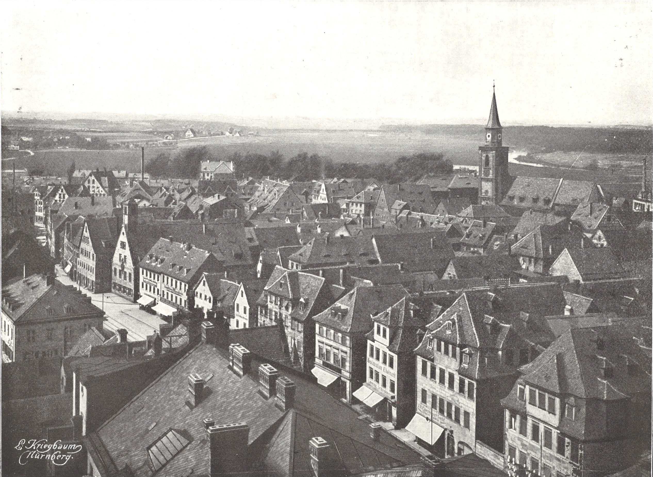 | Dateiinfo (Bild-Unterschrift und Info-Box, automatisch erstellt) | Blick vom Rathausturme gegen die Altstadt und Königstraße, Aufnahme um 1907 Urheber: L. Kriegbaum, Nürnberg<br><br>Lizenz: CC BY-SA 3.0 | ||