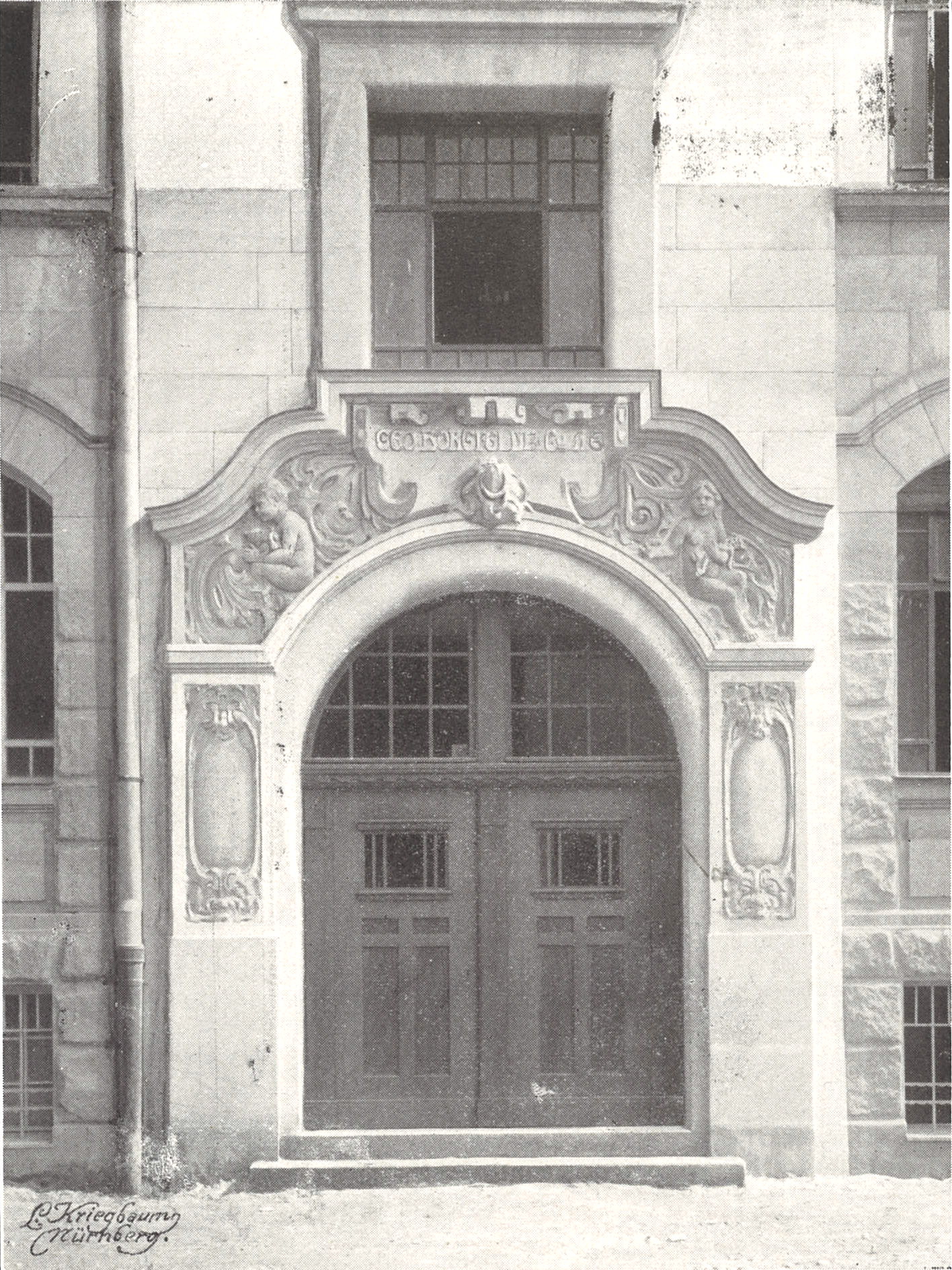 | Beschreibung | „Exporthaus Borgfeldt“, Nürnberger Str. 91, 93, 95, Portal, Aufnahme um 1907 | ||