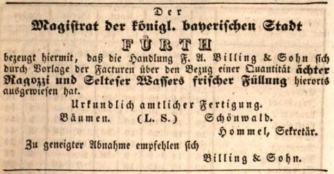 | Dateiinfo (Bild-Unterschrift und Info-Box, automatisch erstellt) | Zeitungsannonce der Handlung "F. A. Billing & Sohn", Juni 1840 Lizenz: NoC-NC 1.0 | ||