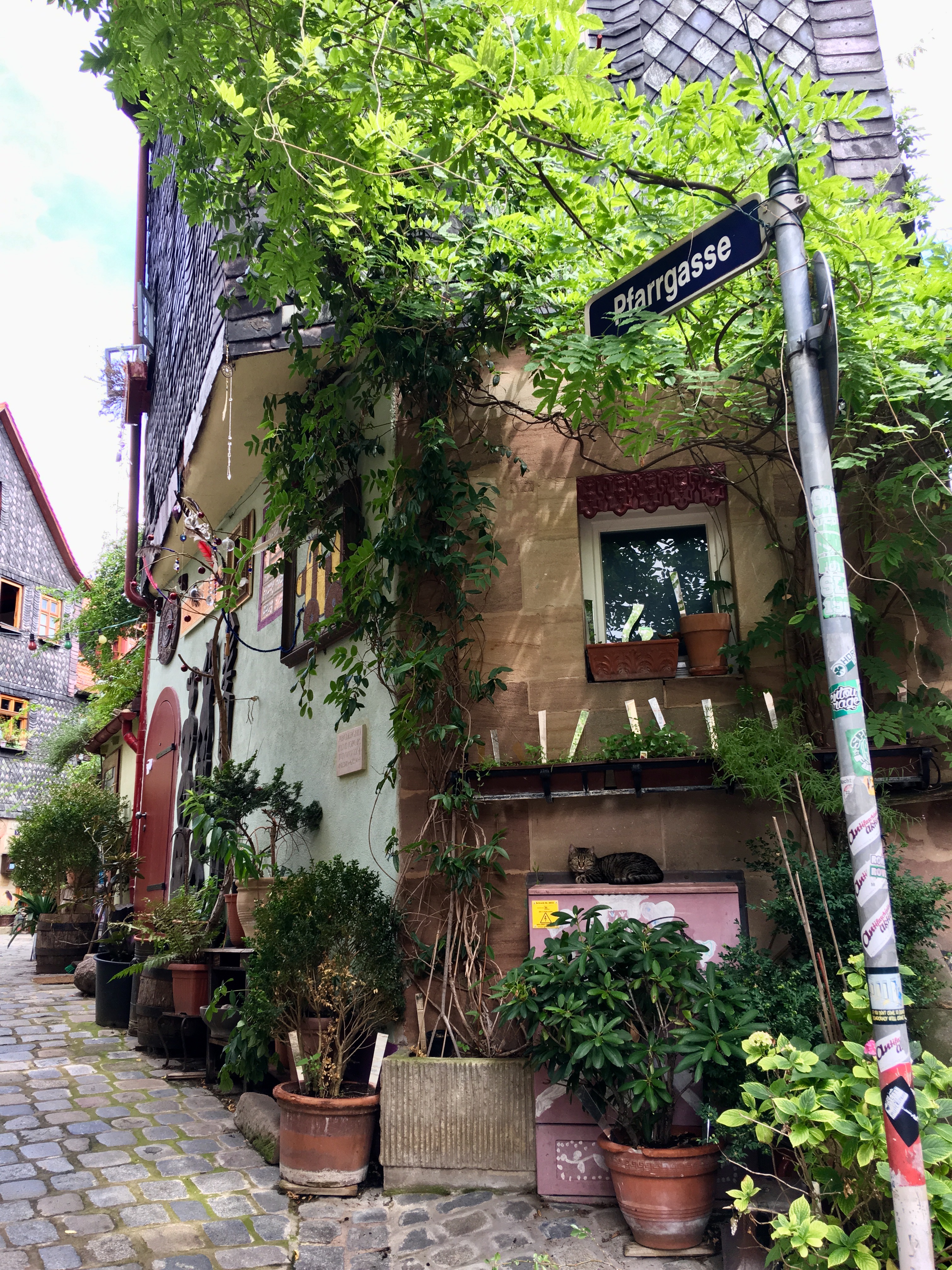 | Beschreibung | Blick in die Pfarrgasse 2017 - mit Katze | ||