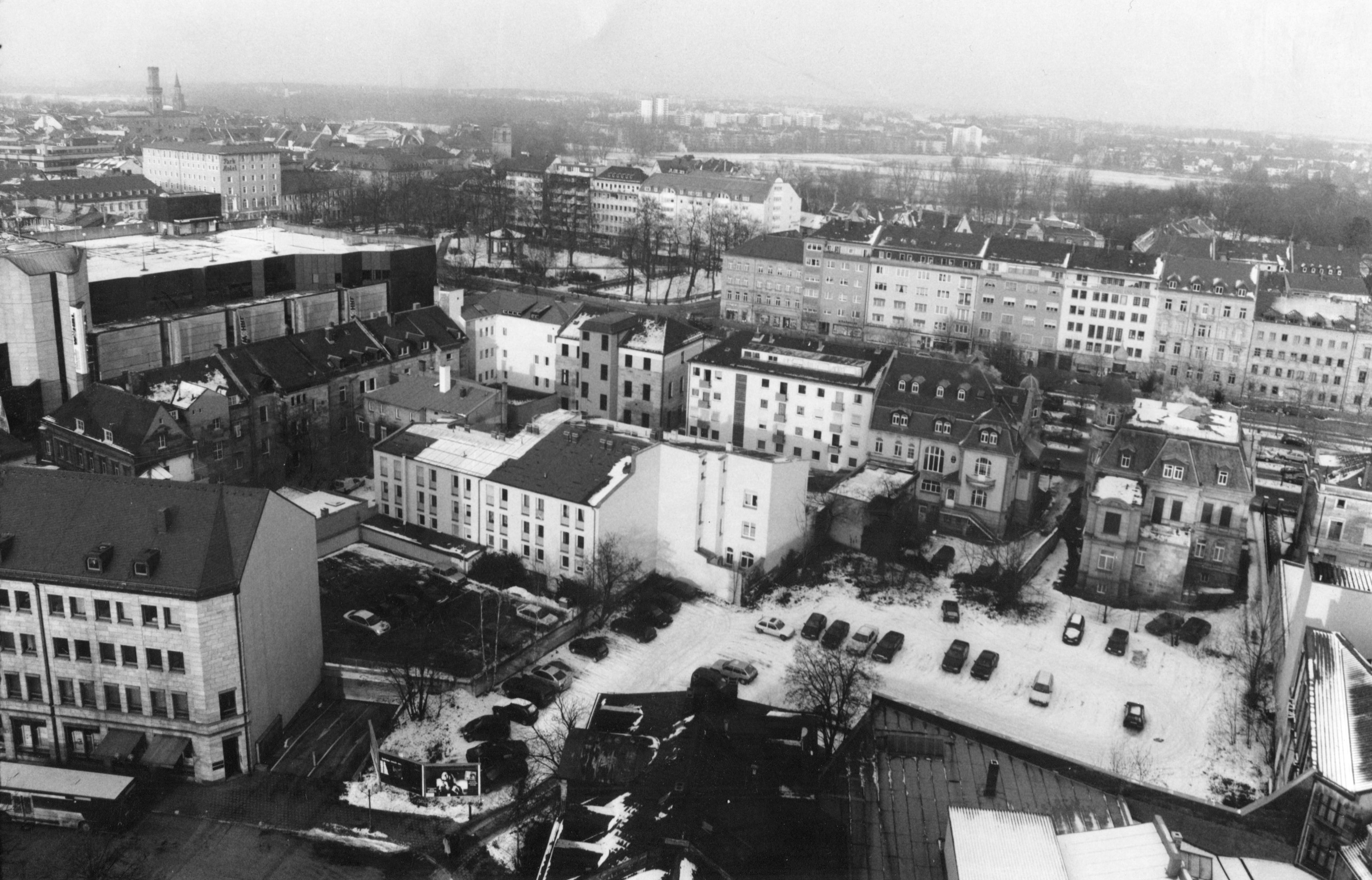 | Dateiinfo (Bild-Unterschrift und Info-Box, automatisch erstellt) | Blick vom Bahnhof-Center in die Innenstadt, ca. 1995 Urheber: Ernst Wolf<br><br>Lizenz: CC BY-SA 3.0 | ||
