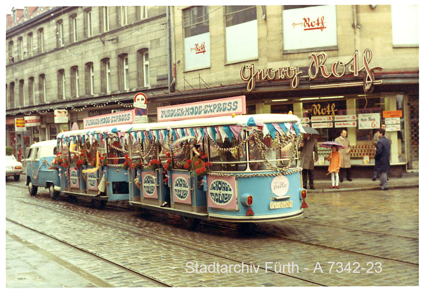 | Beschreibung | Fiedler-Werbewagen - hier beim Blumenkorso des Verkehrsvereins 1964 in der Schwabacher Str. | ||