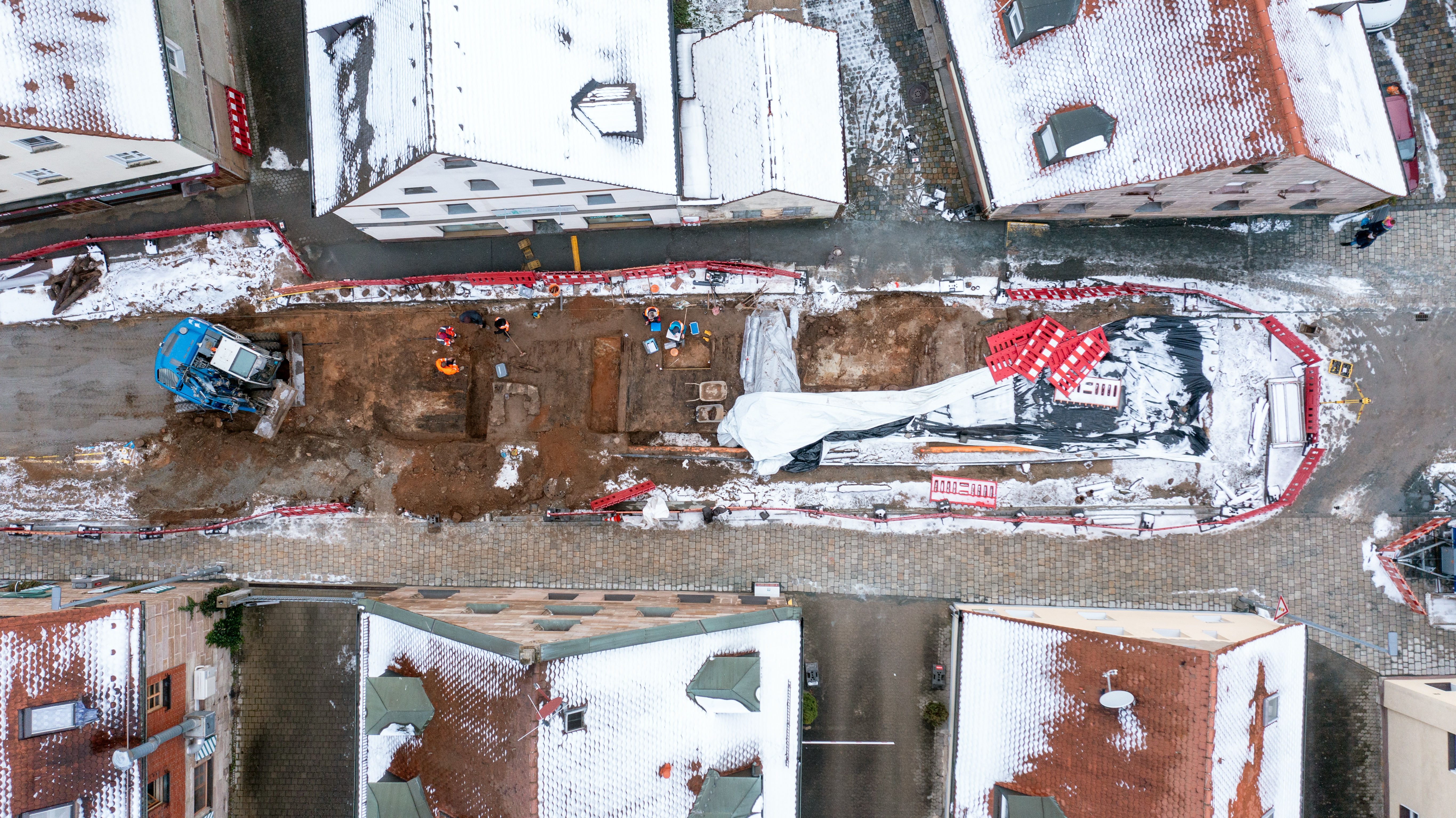 | Beschreibung | Blick über das archäologische Ausgrabungsfeld in der Würzburg Straße in Burgfarrnbach, Dez. 2023 | ||