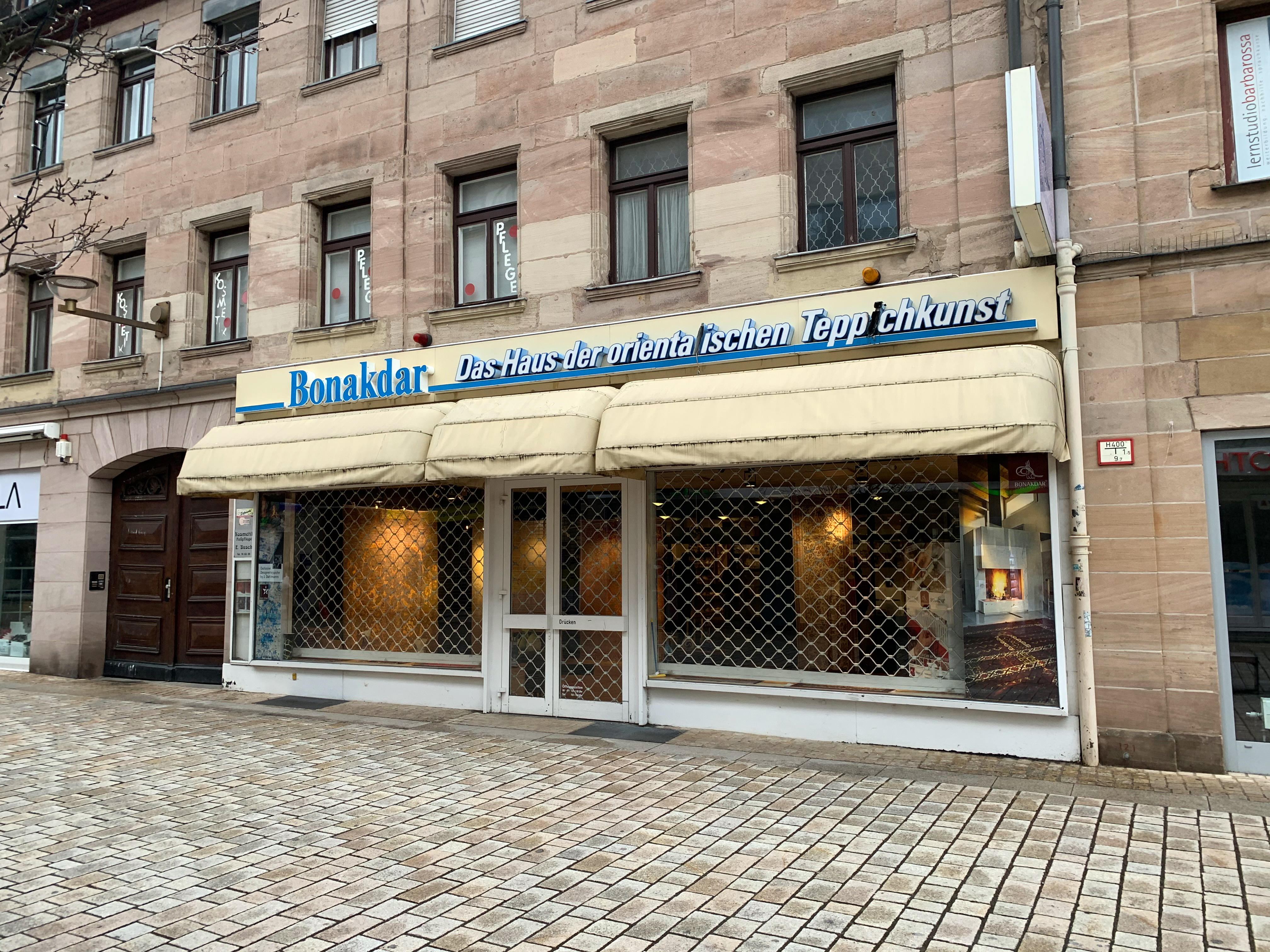 | Beschreibung | Das Traditionsgeschäft Bonakdar Teppichkultur in der Fußgängerzone, Mrz. 2021 | ||