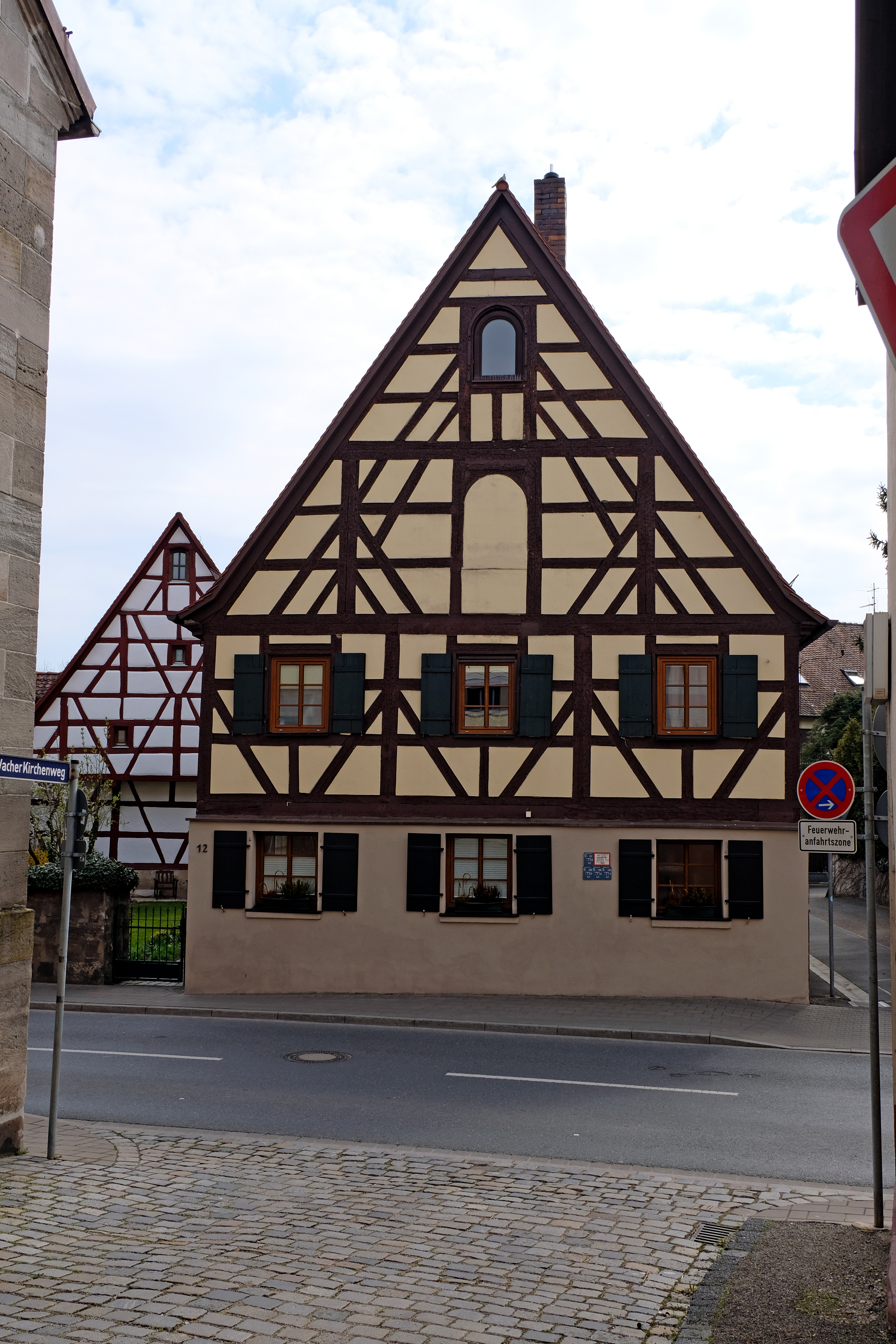 | Beschreibung | Fachwerkhaus Brückenstraße 12 in Vach, April 2020 | ||