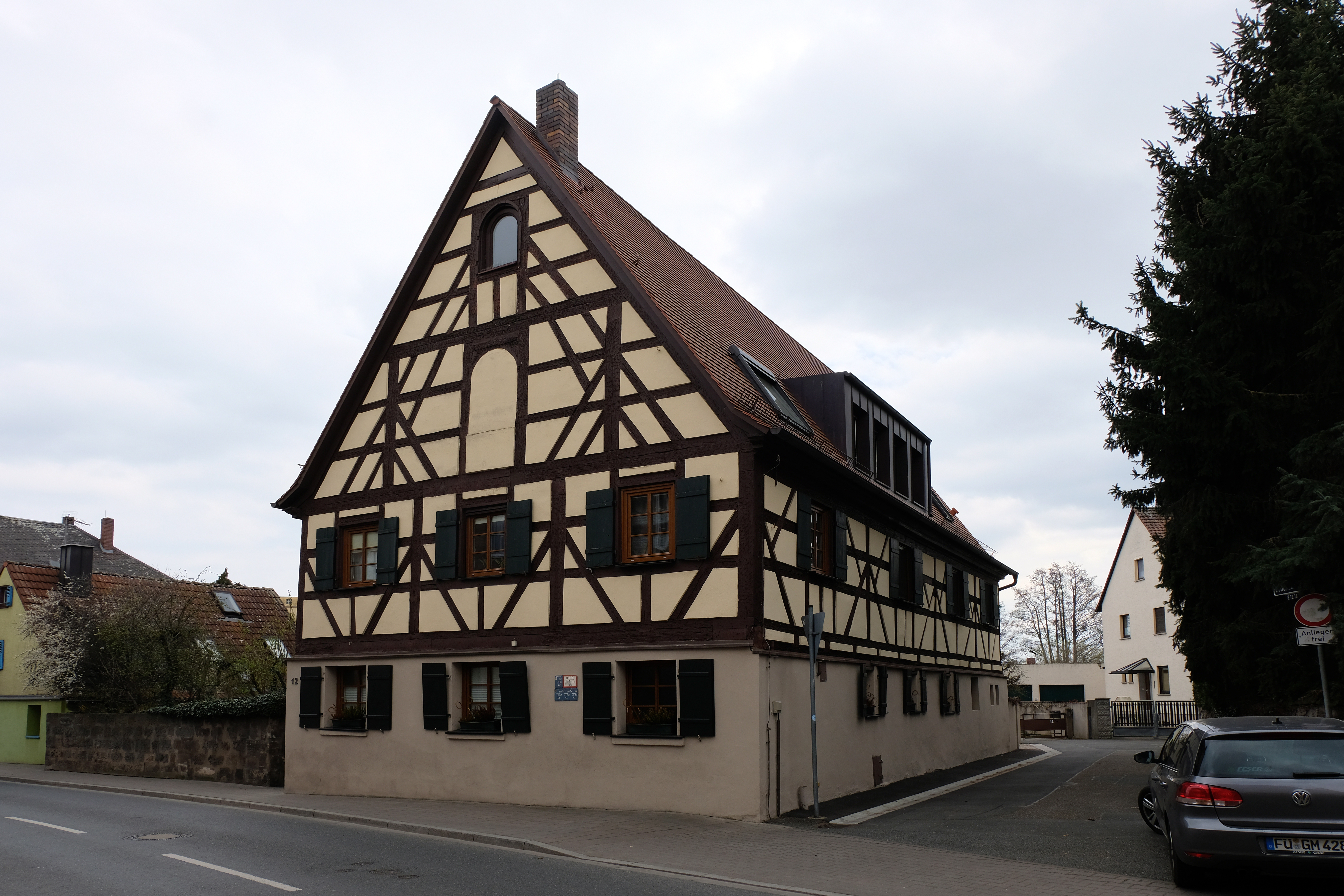 | Beschreibung | Fachwerkhaus Brückenstraße 12 in Vach, April 2020 | ||