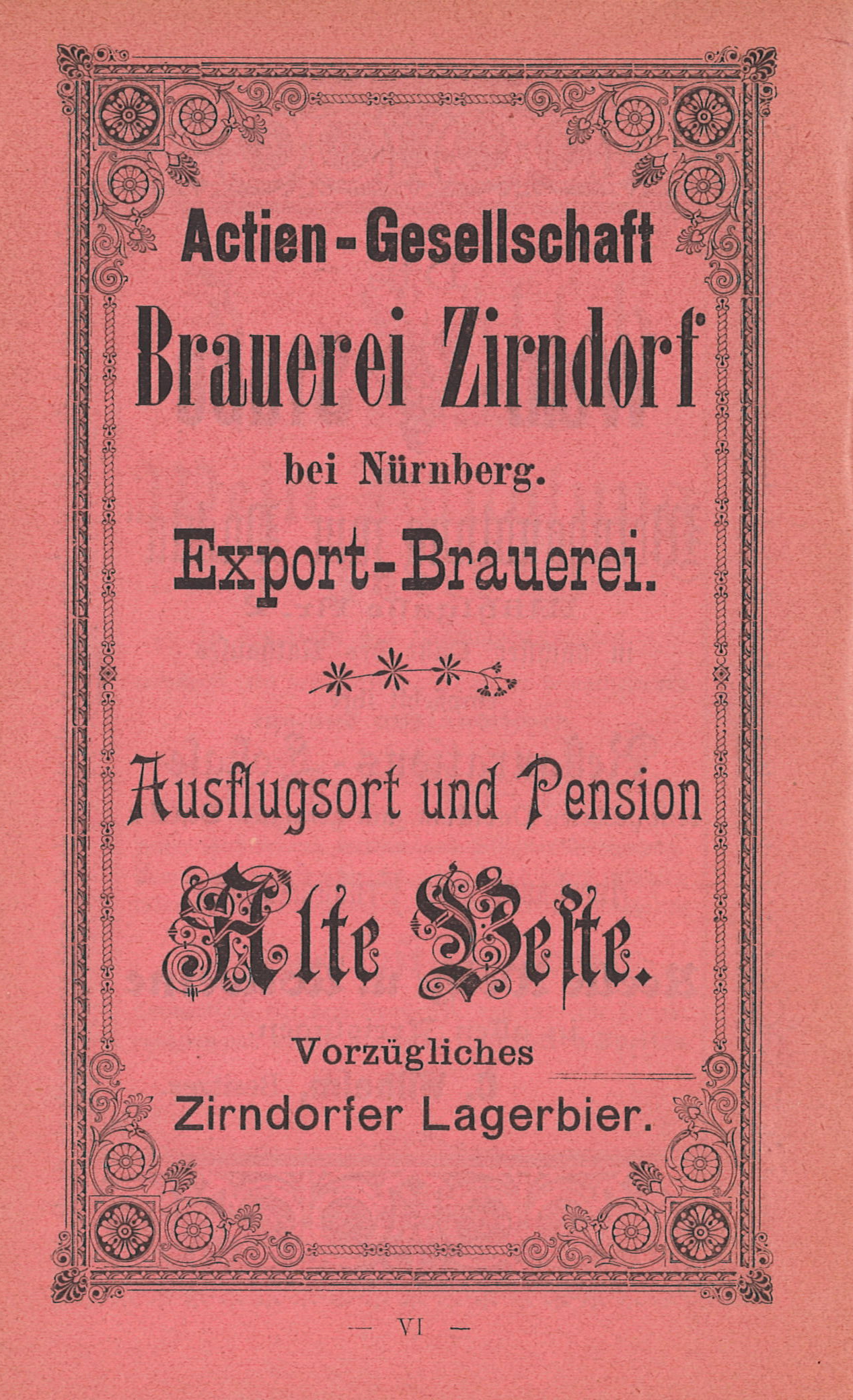 | Beschreibung | Brauerei Zirndorf und Ausflugslokal Alte Veste (Zirndorfer Seite), Werbeanzeige von 1898 | ||