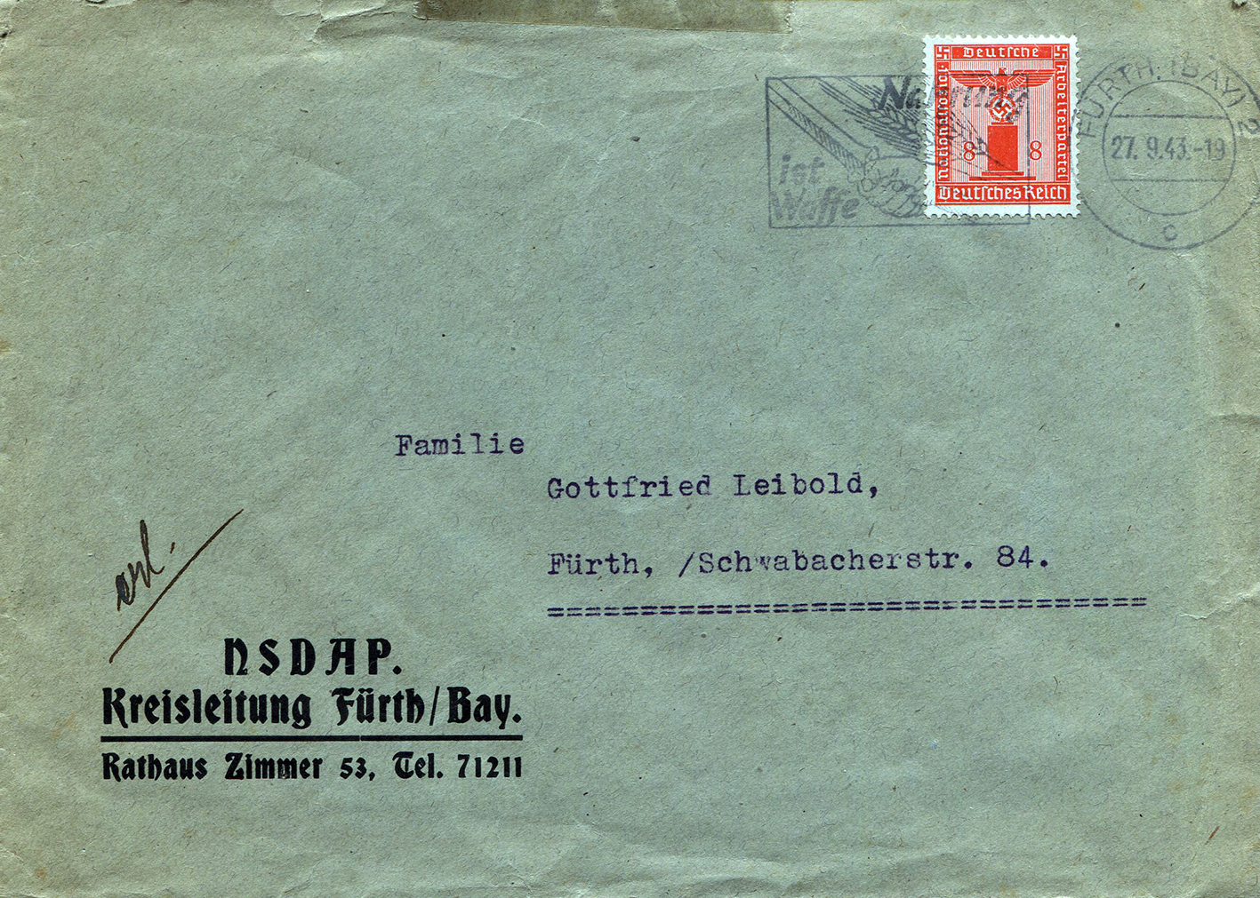 | Dateiinfo (Bild-Unterschrift und Info-Box, automatisch erstellt) | Briefumschlag der NSDAP Kreisleitung mit Sitz im Rathaus Zimmer 53 aus dem Jahr 1943 Urheber: NSDAP<br><br><br>Lizenz: CC BY-SA 3.0 | ||