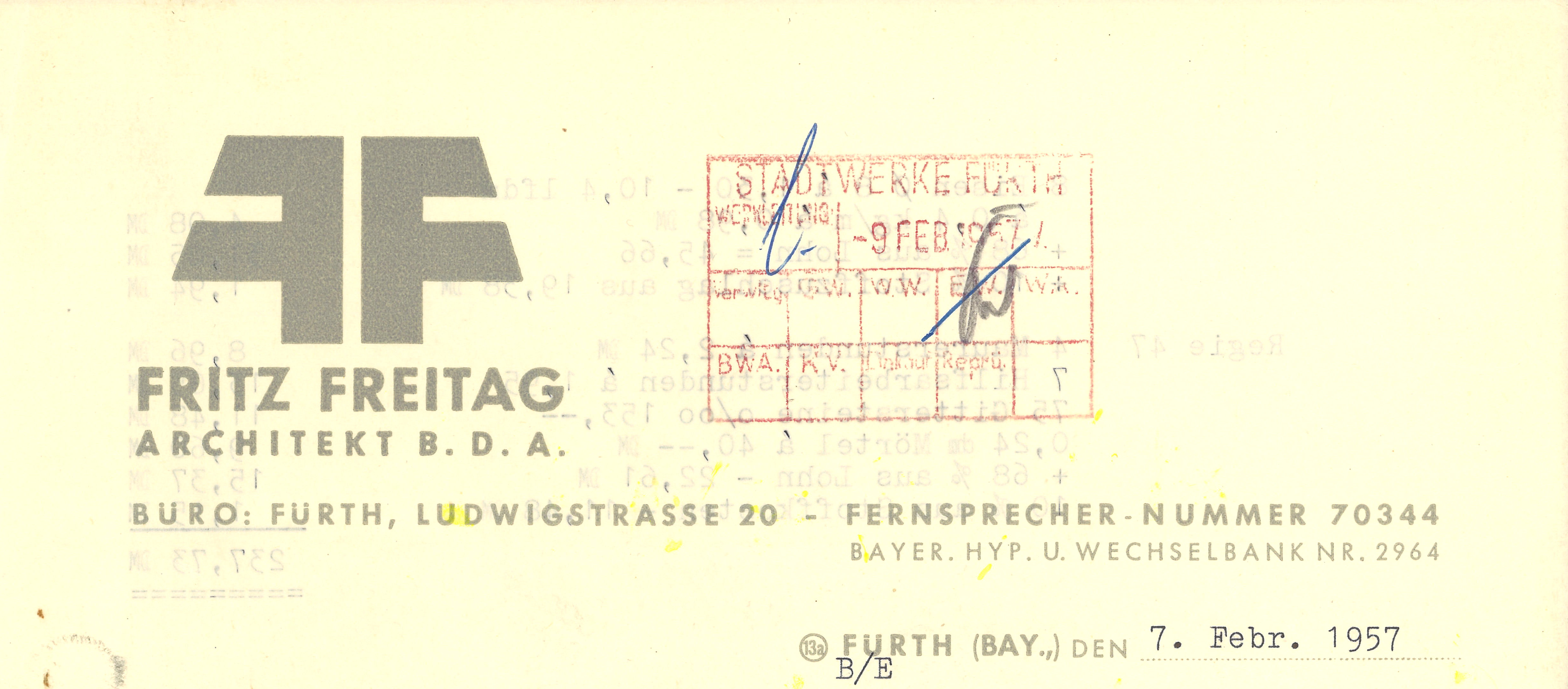 | Beschreibung | Historischer Briefkopf des Architekten Fritz Freitag von 1957 | ||