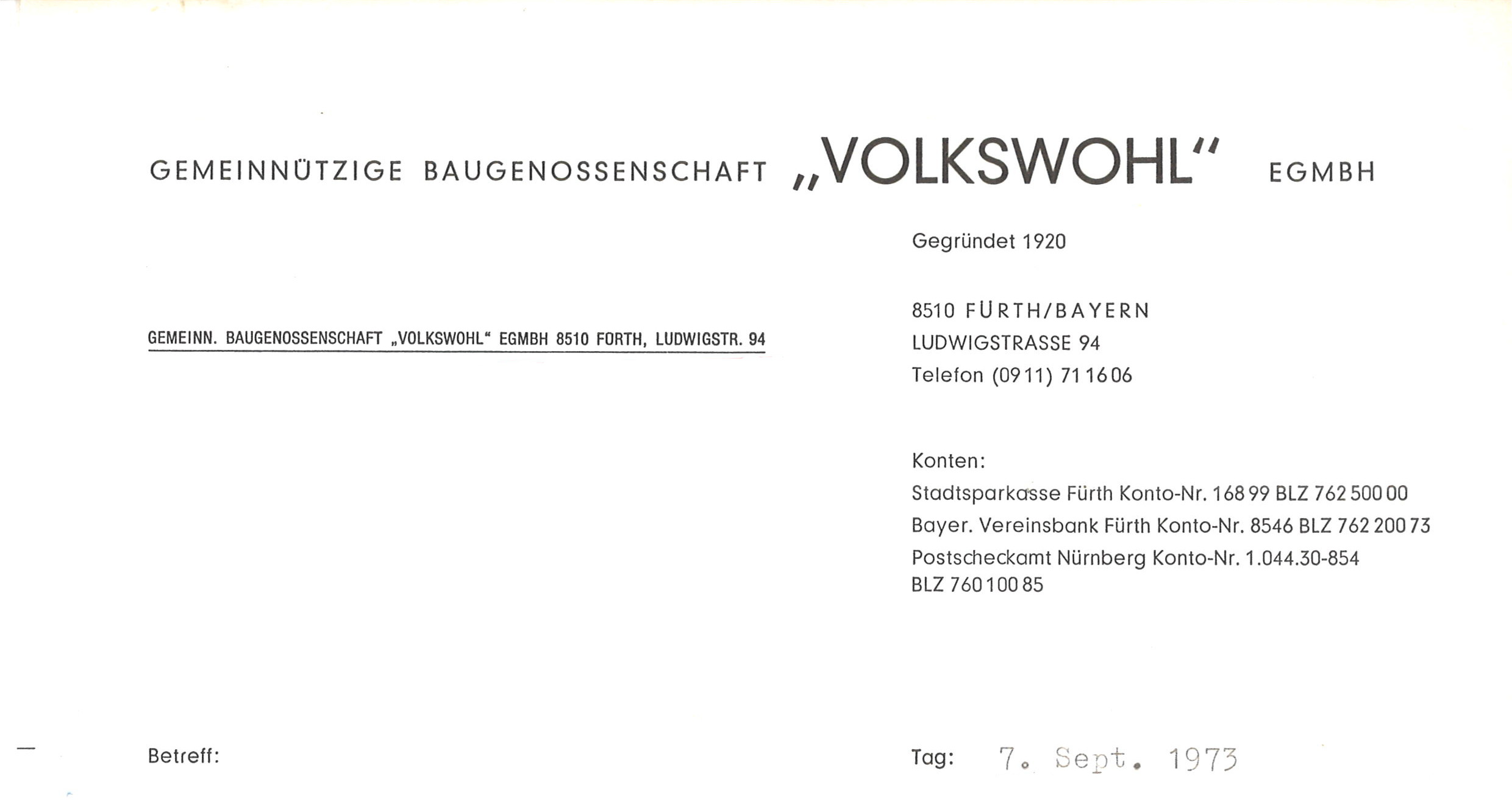 | Beschreibung | Historischer Briefkopf der Baugenossenschaft Volkswohl von 1973 | ||