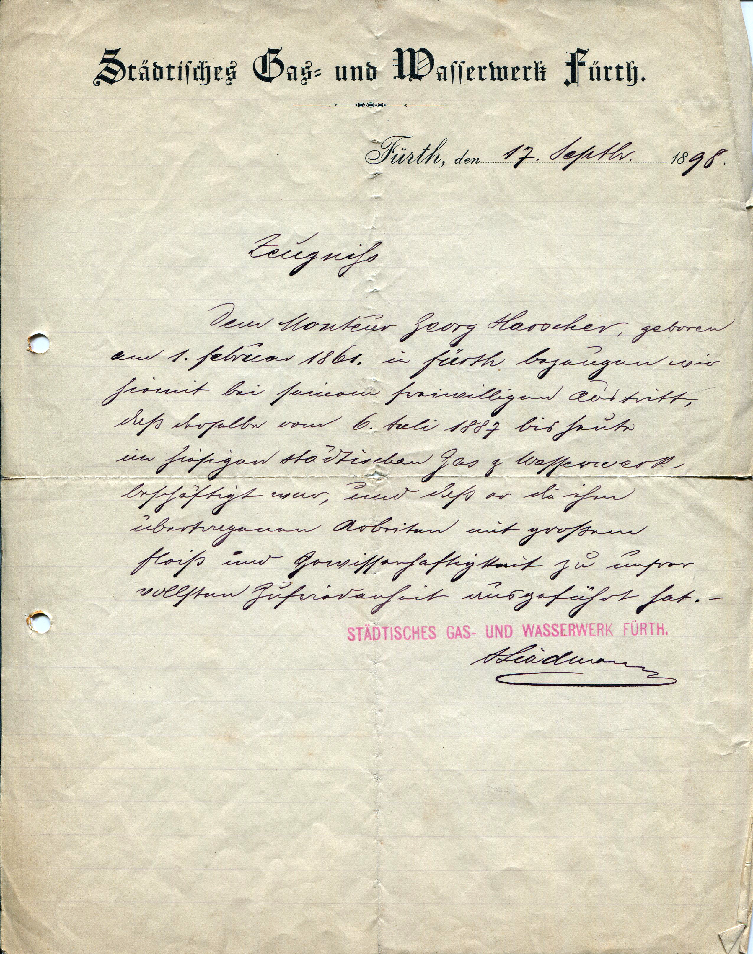 | Beschreibung | Briefkopf der städt. Gas- und Wasserwerke der Stadt Fürth, 1898 | ||