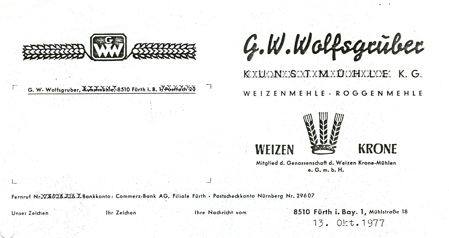 | Beschreibung | Historischer Briefkopf der Wolfsgrubermühle von 1977 | ||