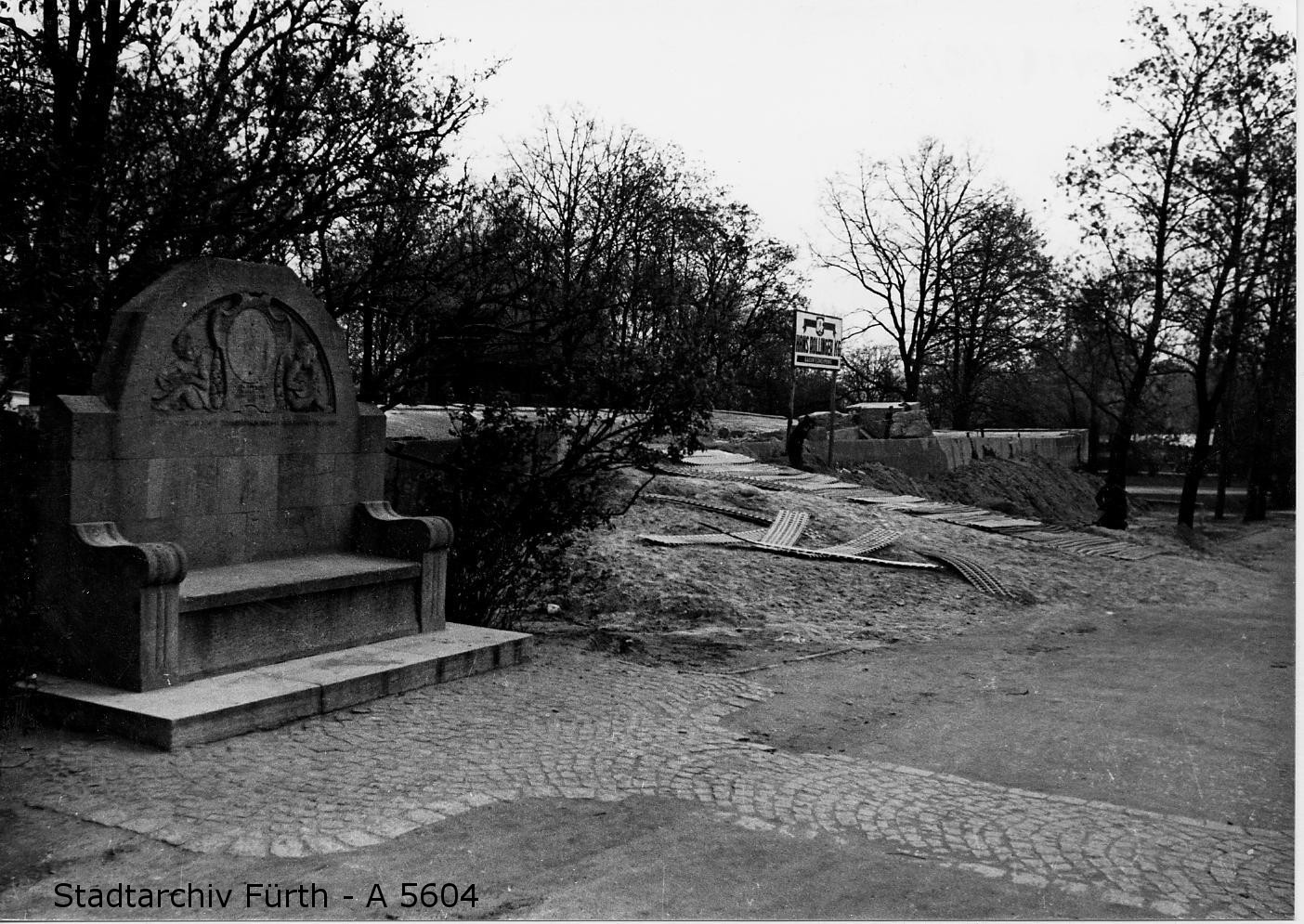 | Dateiinfo (Bild-Unterschrift und Info-Box, automatisch erstellt) | Dach des gesprengten Bunkers in der damaligen Birkenstraße. Vorbereitungsarbeiten für die ... Dach des gesprengten Bunkers in der damaligen Birkenstraße. Vorbereitungsarbeiten für die Neugestaltung. Im Vordergrund steht die Pfeifferbank<br>Urheber: unbekannt<br><br>Lizenz: Bildlizenz-Stadtarchiv | ||