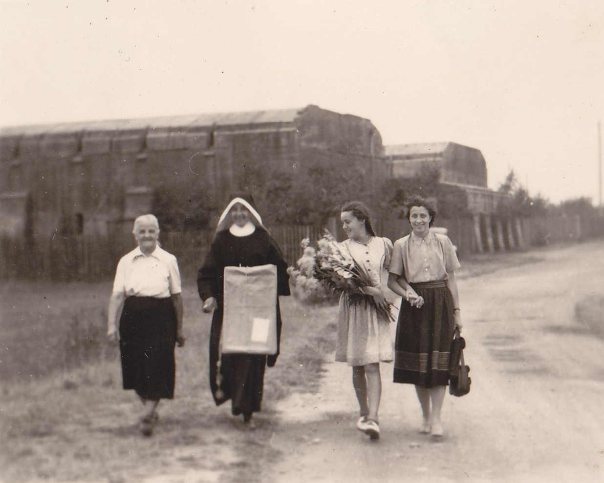 | Beschreibung | Familie auf dem Heimweg vom Südwestlichen Gartenbauverein, im Hintergrund der Bunker an der Langfuhrer Straße. Aufnahme um 1950 | ||