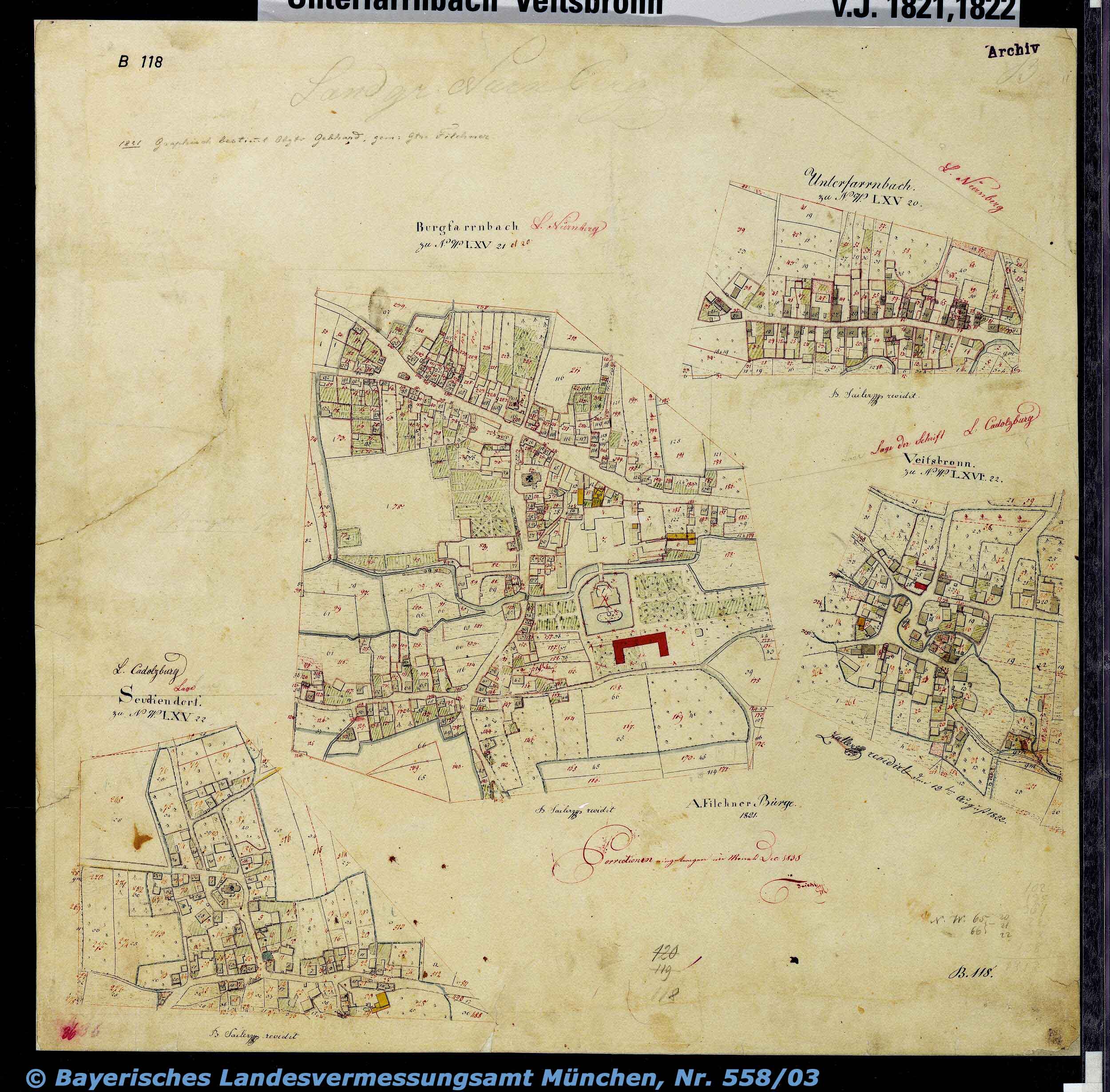 | Quellangaben | Uraufnahme/Ortsblätter des 19. Jahrhunderts: Burgfarrnbach (1821) -Bayerische Landesbibliothek - online-Digitalisat | ||