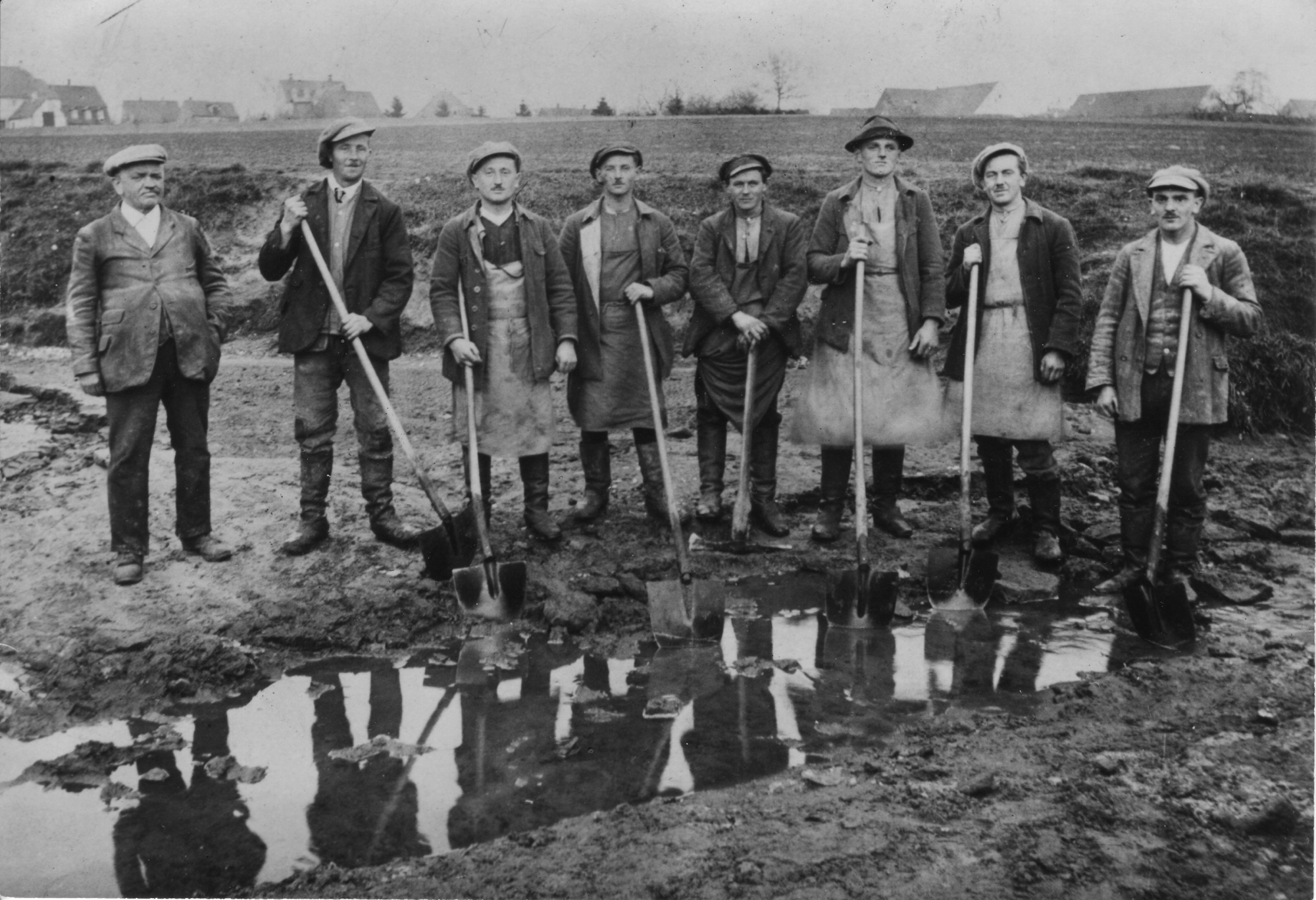| Beschreibung | Arbeitseinsatz zur Unterhaltung des Mühlbachs in den 1930er Jahren - links Johann Wein, rechts Heinrich Wein | ||