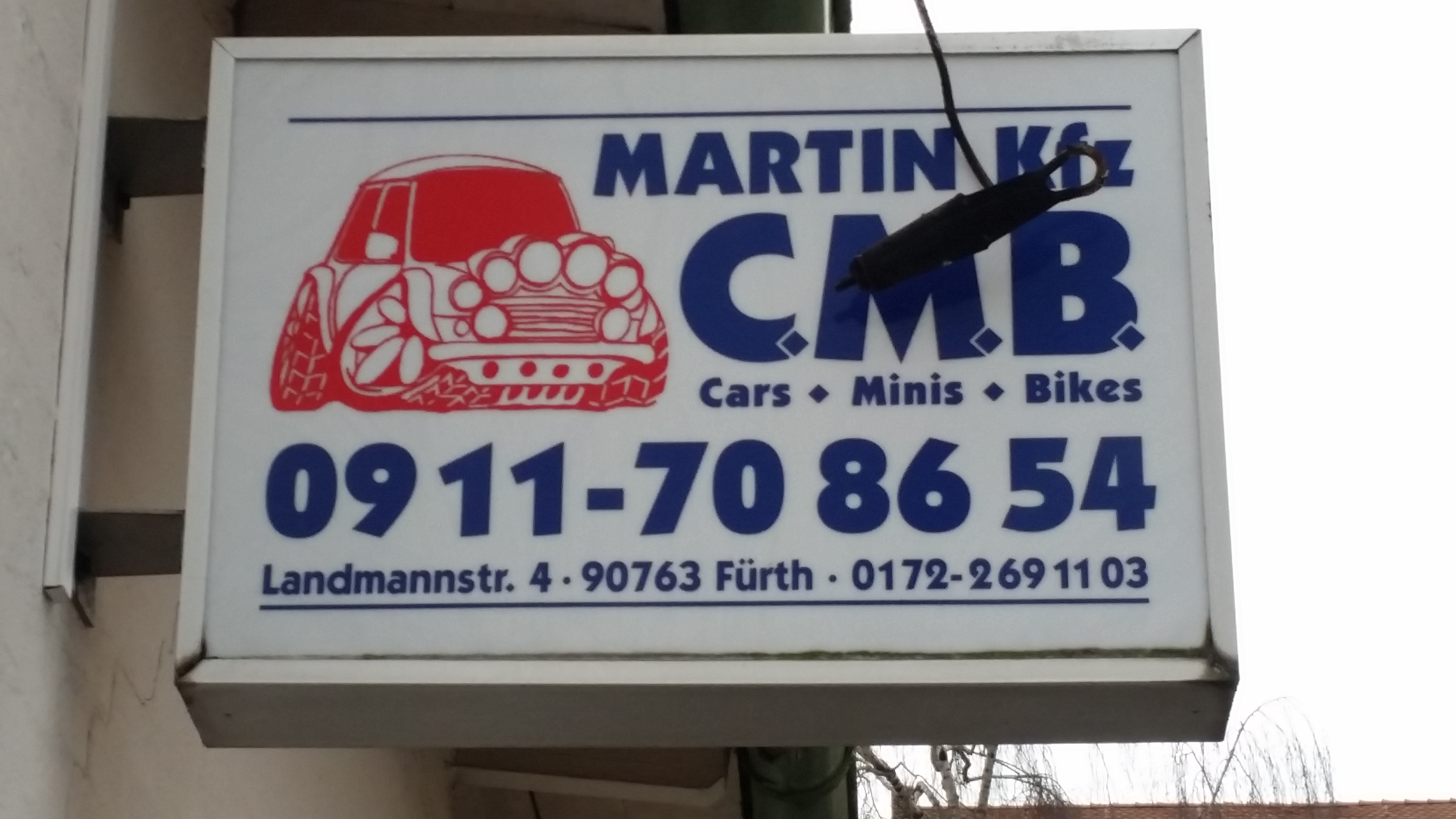 | Beschreibung | Leuchtreklame der ehemaligen KFZ-Werkstatt Martin C.M.B. | ||