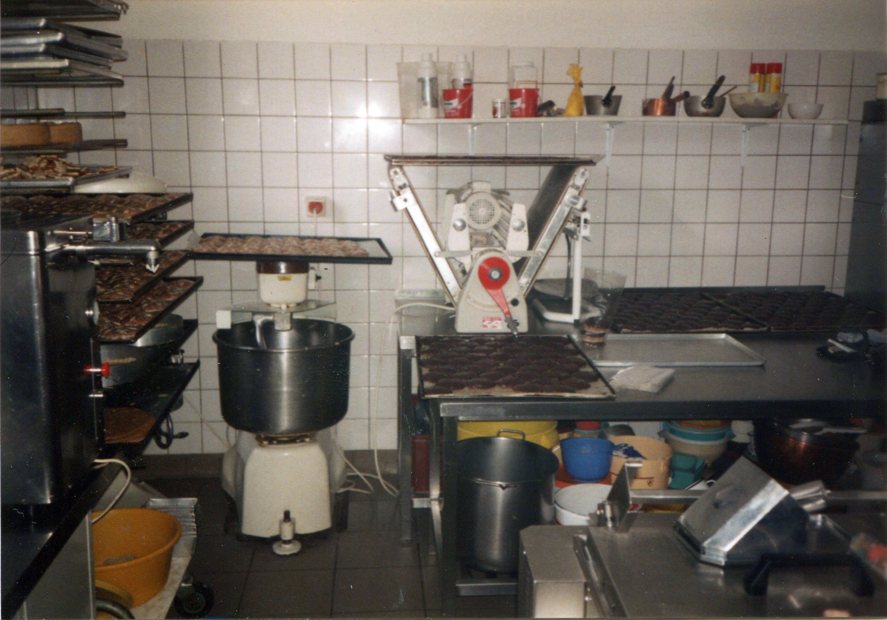 | Beschreibung | Die Backstube des ehem. Café Waldmann während der Herstellung von Lebkuchen, ca. 1990 | ||