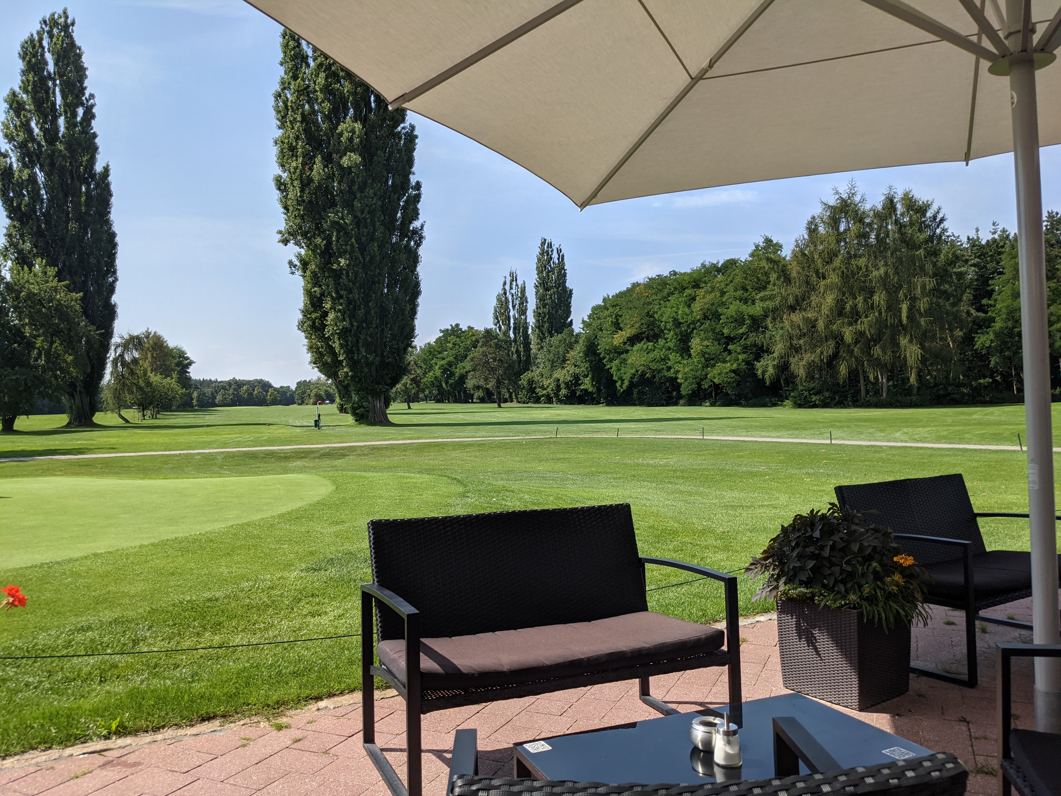 | Beschreibung | Blick von der Terrasse des Golfrestaurants auf den Golfplatz, August 2021 | ||