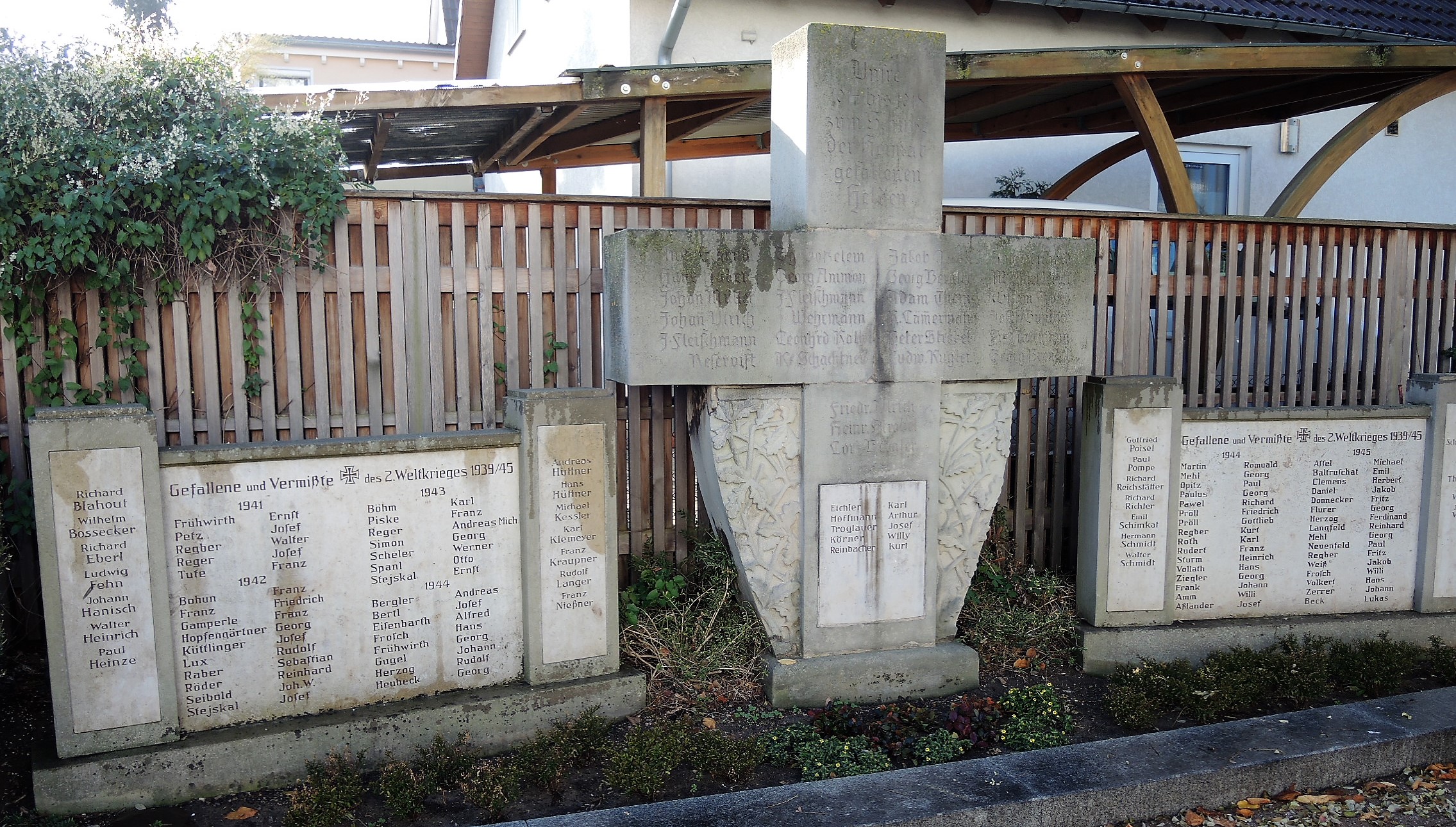 | Beschreibung | Stadeln (Kriegerdenkmal) 1914-1918 und 1939-1945 bei der Christuskirche. Das Denkmal stand erst hinter dem Gasthaus Kalb in einer kleinen Grünanlage und wurde bei der Straßen Verbreiterung Am Fischerberg hierher versetzt. | ||