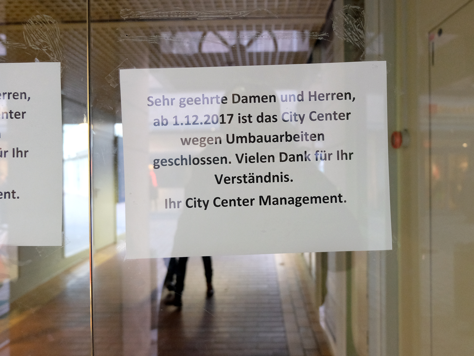 | Beschreibung | Hinweis zur Schließung des City-Center nach fast 30 Jahren, Nov. 2017 | ||
