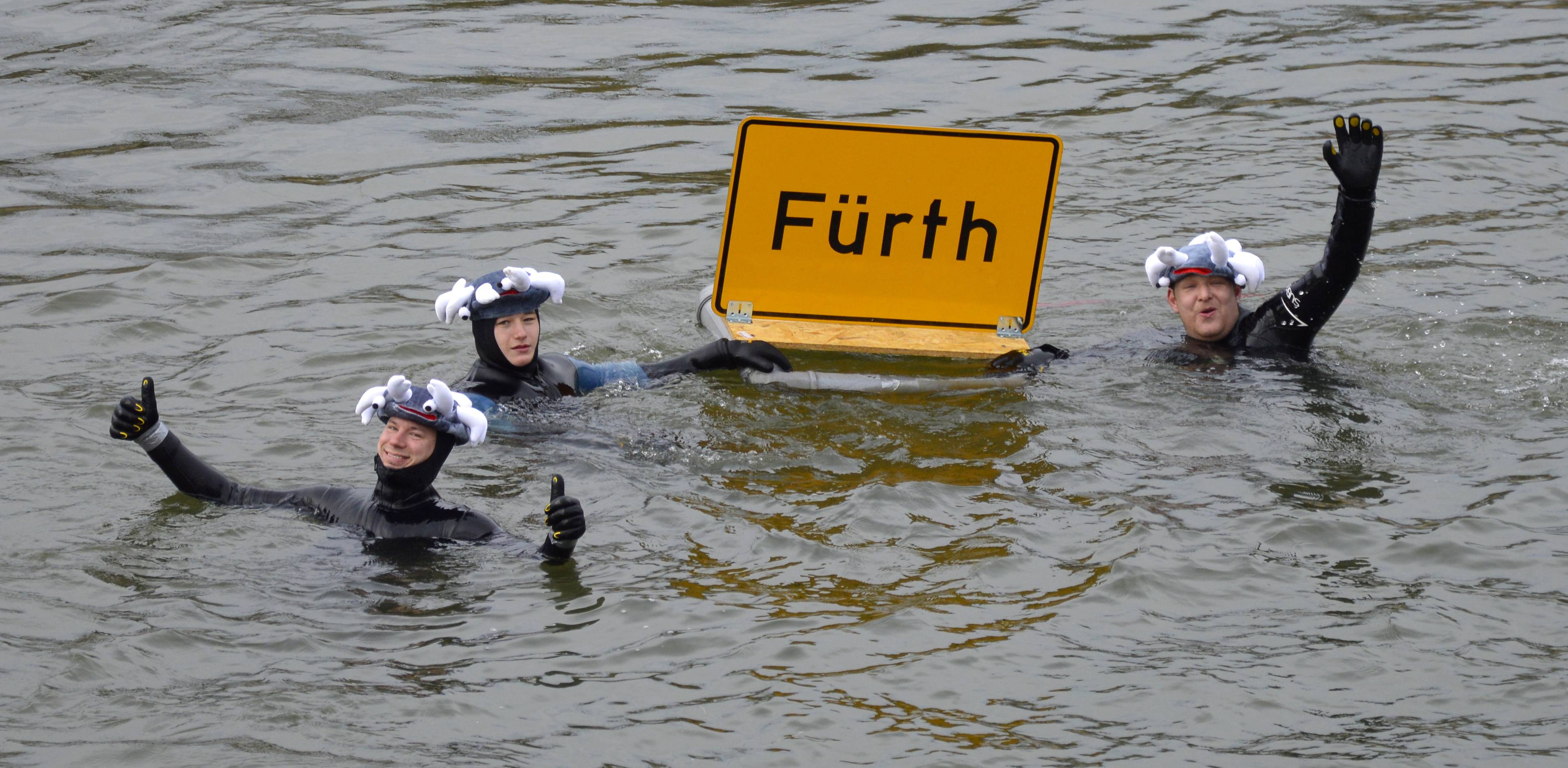 | Beschreibung | Mitglieder des DLRG-Ortsverbands mit Ortsschild Fürth beim Donauschwimmen 2016 in Neuburg a. d. Donau | ||