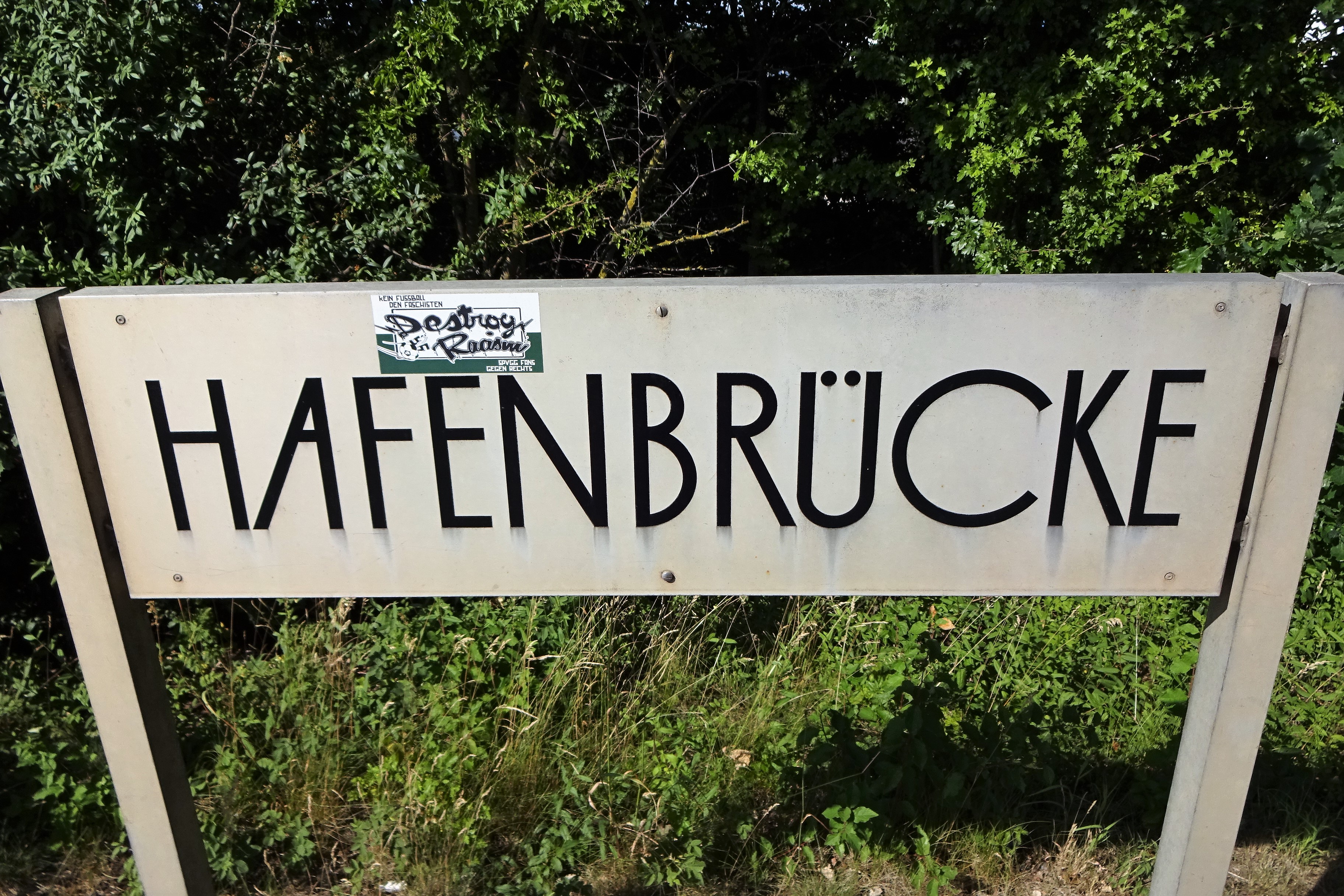 | Beschreibung | Bezeichnungsschild der Hafenbrücke im Juni 2022 | ||