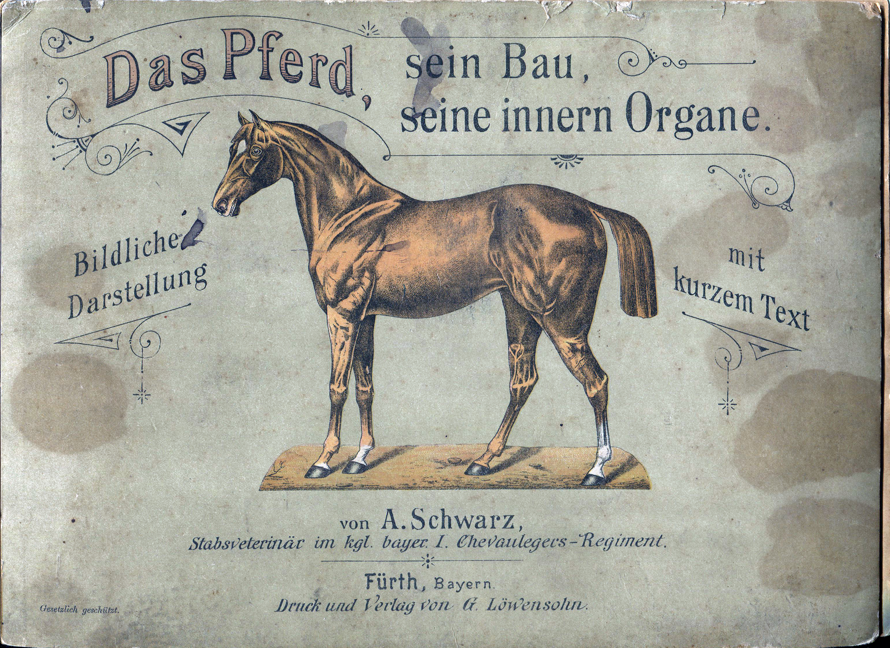 | Dateiinfo (Bild-Unterschrift und Info-Box, automatisch erstellt) | Titelseite: Das Pferd, sein Bau, seine inneren Organe, ca. 1894 Urheber: G. Löwensohn<br><br>Lizenz: CC BY-SA 3.0 | ||