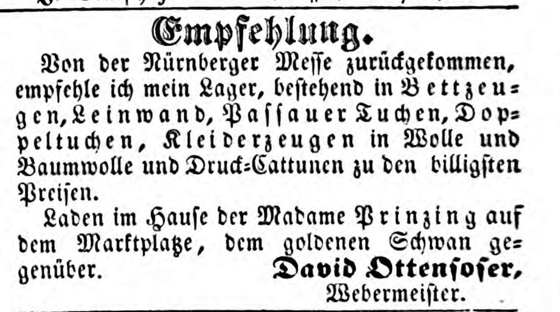 | Beschreibung | Anzeige David Ottensoser, Fürther Tagblatt 21. Februar 1853 | ||