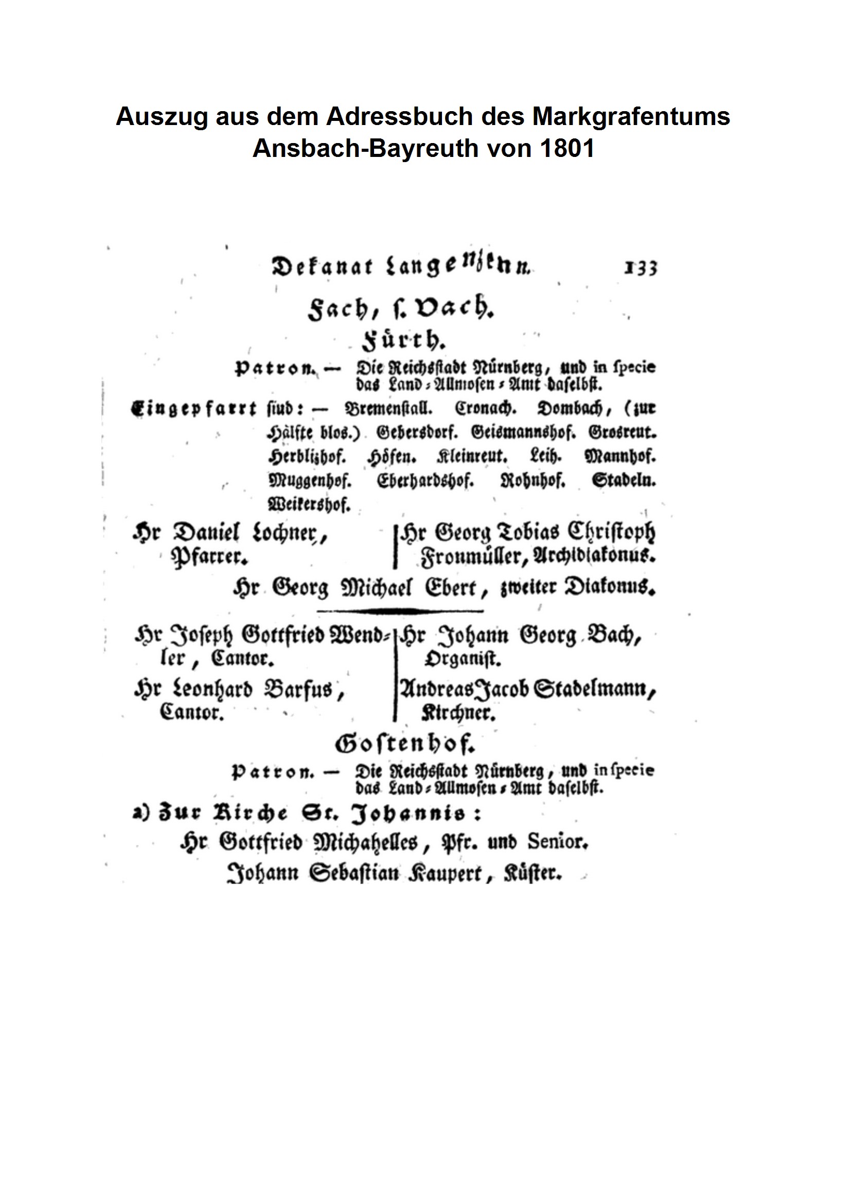 | Dateiinfo (Bild-Unterschrift und Info-Box, automatisch erstellt) | Auszug aus dem Adressbuch des Markgrafentums Ansbach-Bayreuth von 1801 mit dem Dekanat Langenzenn Lizenz: CC BY-SA 4.0 | ||