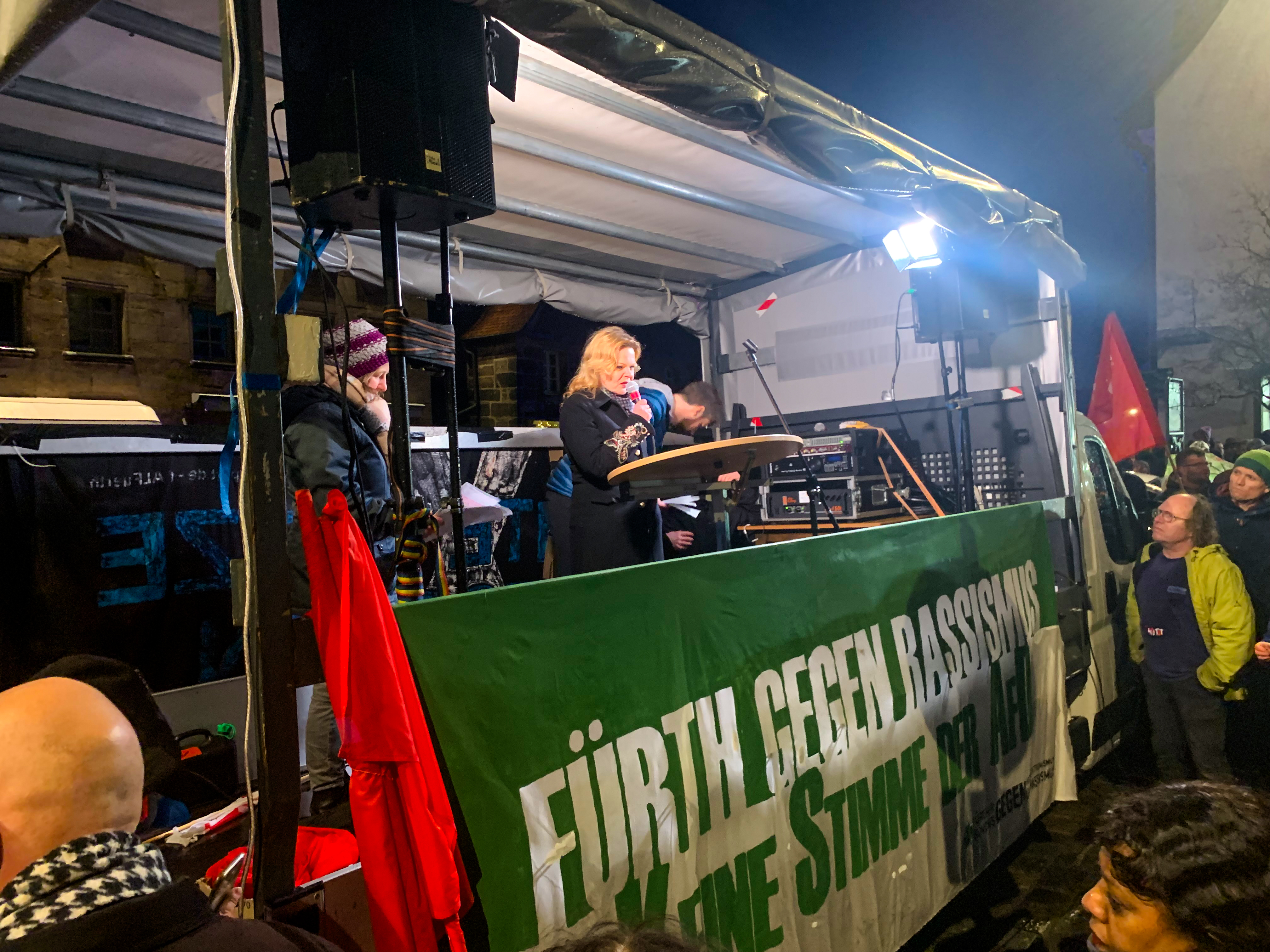 | Beschreibung | Demonstration gegen Rassismus und Rechtsextremismus auf dem Grünen Markt mit der neuen Theaterintendantin Dr. Silva Stolz als Rednerin, Jan. 2024 | ||
