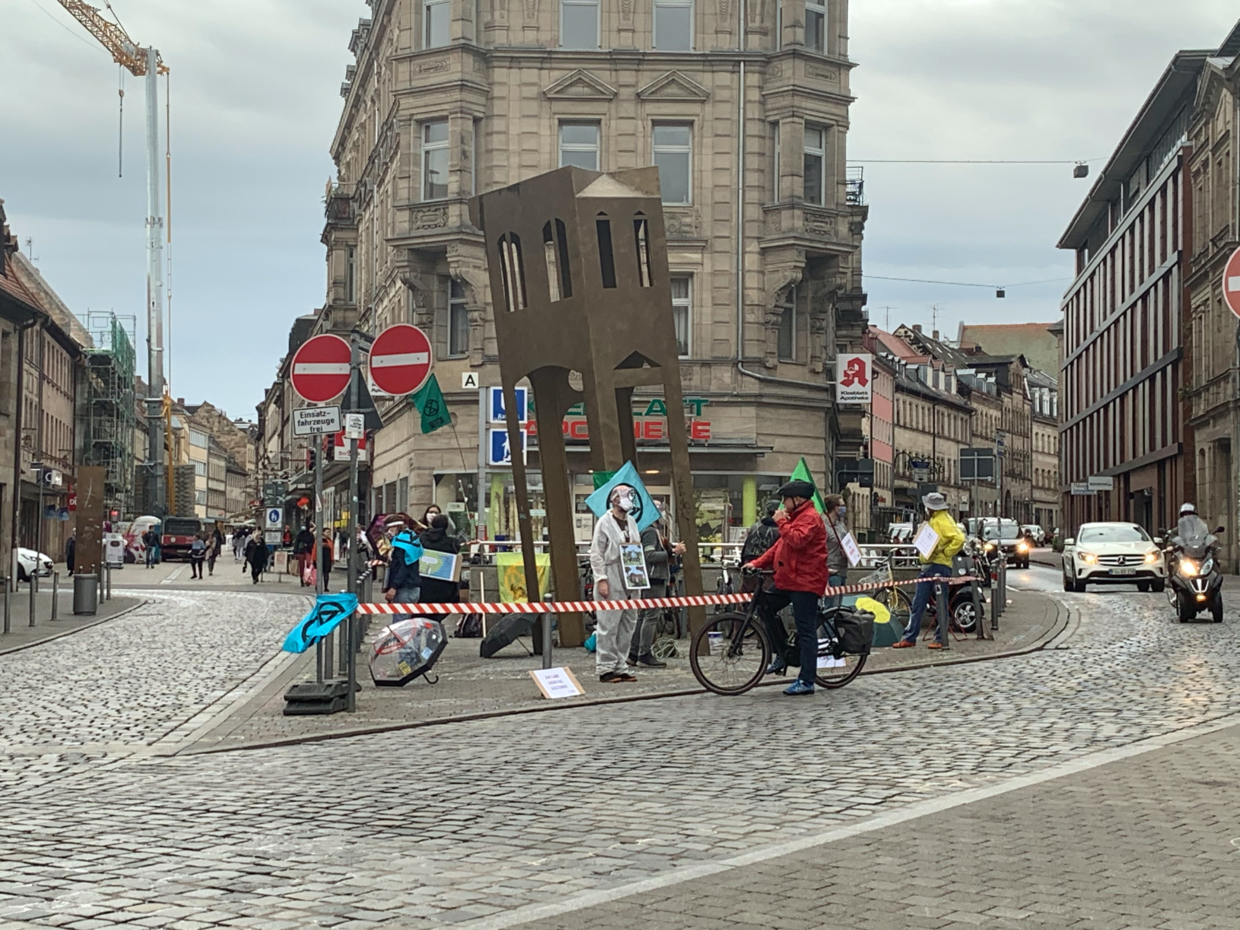 | Beschreibung | Erste Demonstration nach der COVID-19-Pandemie in Fürth, hier vermutlich Vertreter der Extinction Rebellion Fürth am Kohlenmarkt, Mai 2020 | ||