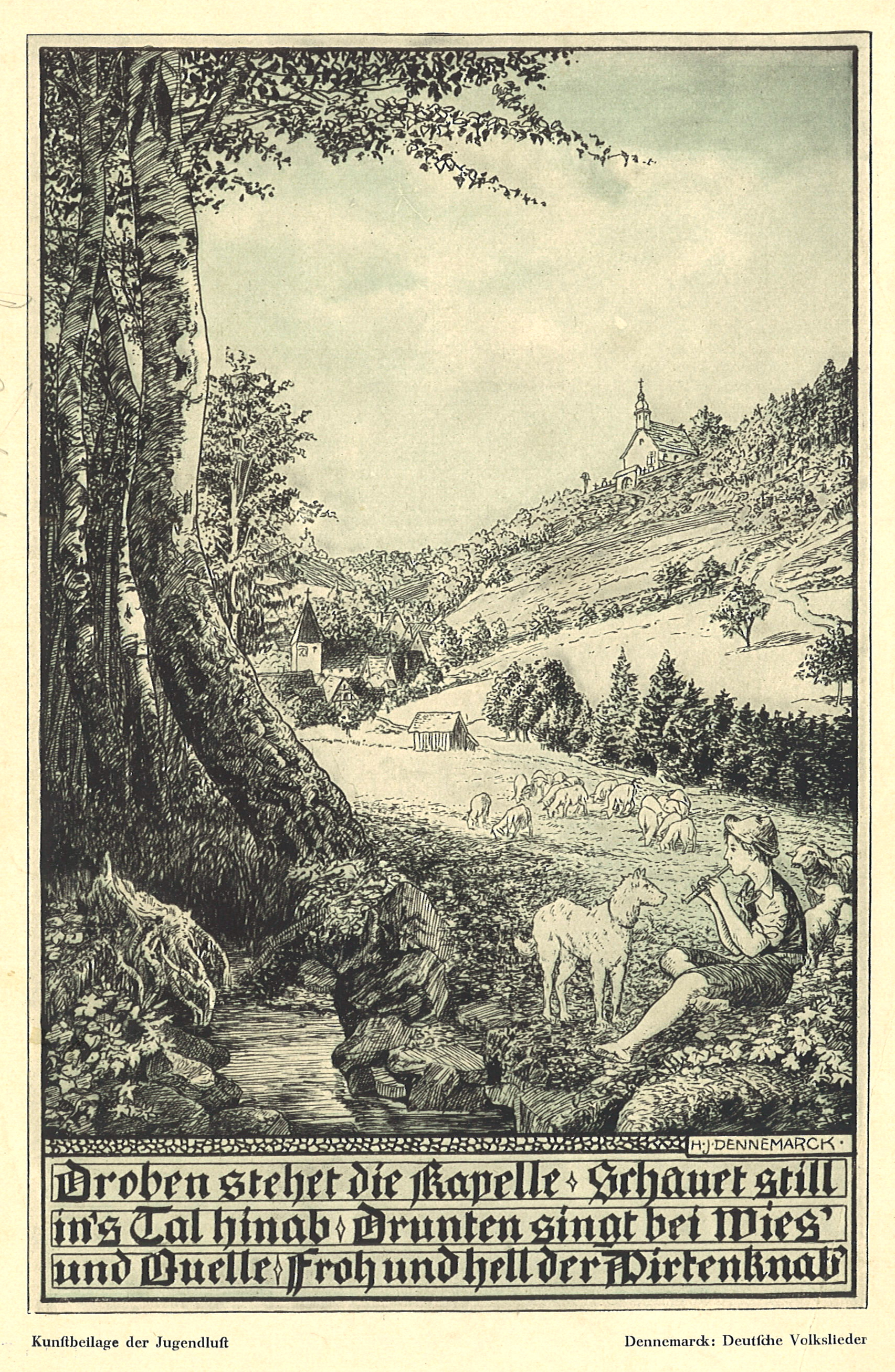 | Beschreibung | Zeichnung von Heinrich J. Dennemarck, Loseblatt-Beigabe der Zeitschrift Jugendlust, 1930er Jahre | ||