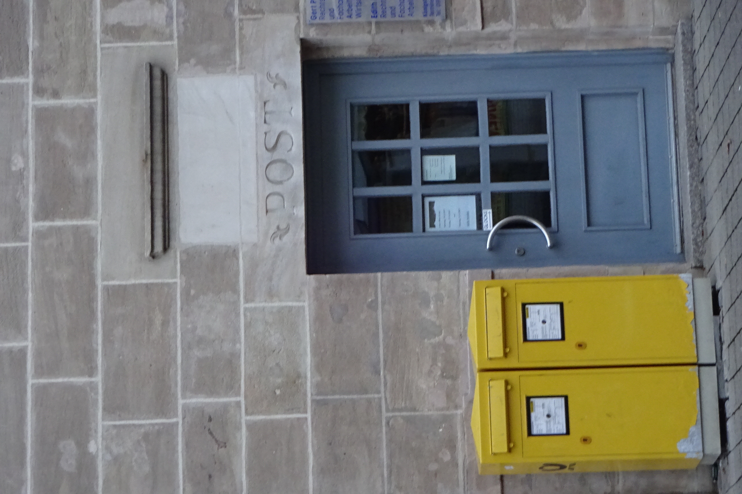 | Beschreibung | Detail Anwesen Königstraße 76 als früheres Postamt mit Briefkästen, Dez 2019 | ||