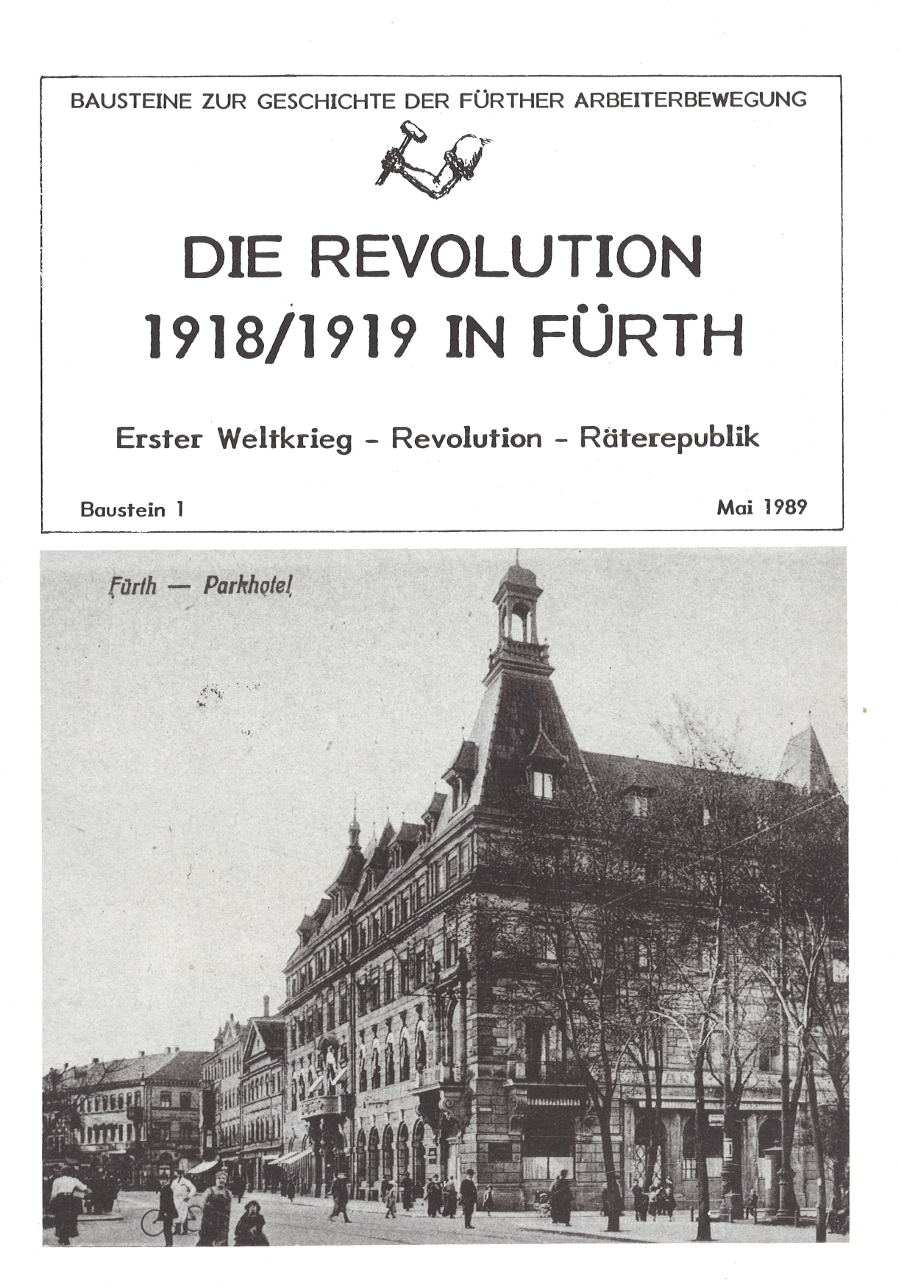 | Dateiinfo (Bild-Unterschrift und Info-Box, automatisch erstellt) | Die Revolution 1918/1919 in Fürth - Buchtitel Urheber: DGB-Geschichtswerkstatt Fürth<br><br>Lizenz: copyright | ||