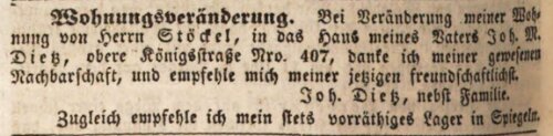 | Dateiinfo (Bild-Unterschrift und Info-Box, automatisch erstellt) | Wohnungsveränderung Joh. Dietz, September 1841 Lizenz: NoC-NC 1.0 | ||